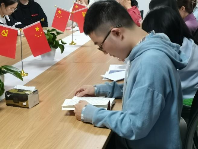本科生第二党支部在桃李苑12幢生活园区活动室开展了“品读经典,锤炼党性”读书分享会。师生党员共读经典著作《社会主义发展简史》,相互交流感想,分享自己与党有关的故事。