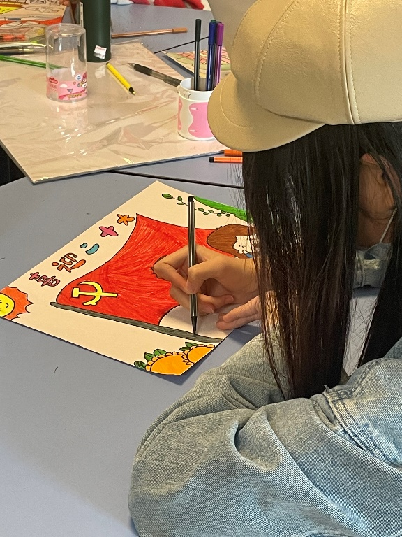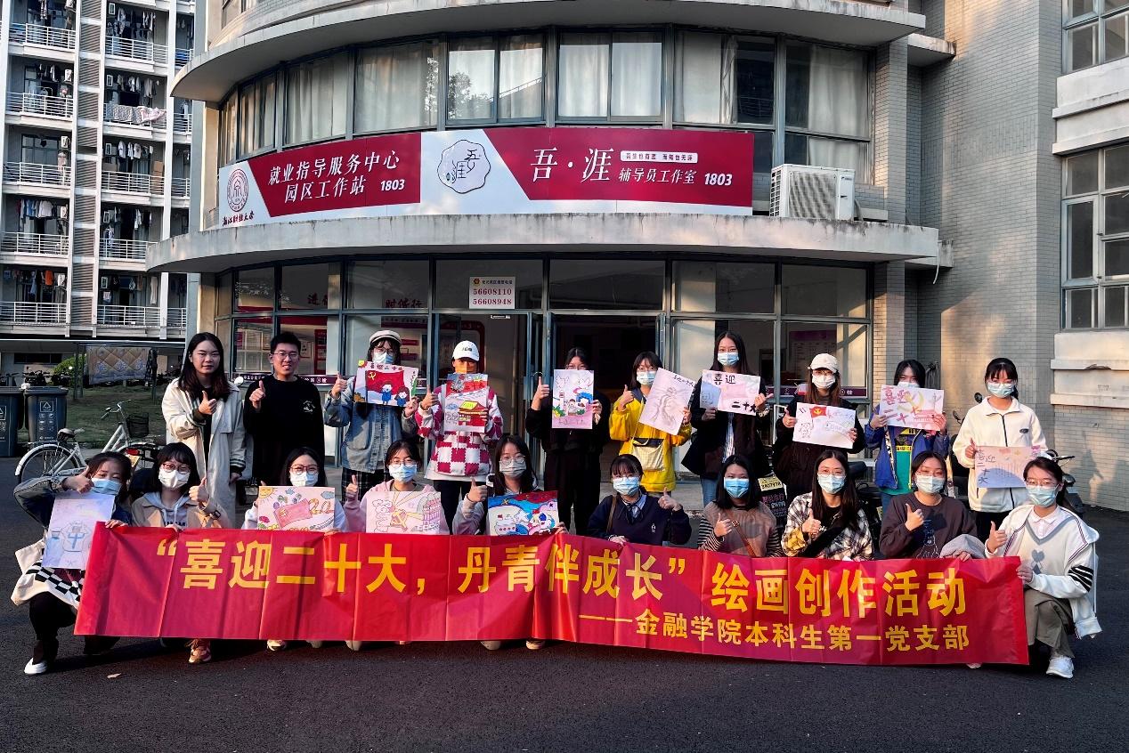 本科生第一党支部在桃李苑3幢生活园区活动室举办了“喜迎二十大,墨香伴成长”绘画创作主题活动,支部书记叶苗苗带领党员们通过绘画感悟新中国的快速发展进程,抒发了大家对祖国美好的热爱和祝愿。