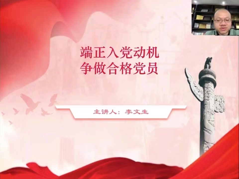 李文生老师以《端正入党动机,争做合格党员》为主题,通过“什么是入党动机”“为什么要树立正确的入党动机”以及“如何树立正确的入党动机”三个问题向学员们讲述唯一正确的入党动机是在党组织中献身共产主义事业,全心全意为人民服务。李老师还对学员们应该怎样积极创造条件加入中国共产党进行了详细的解说。