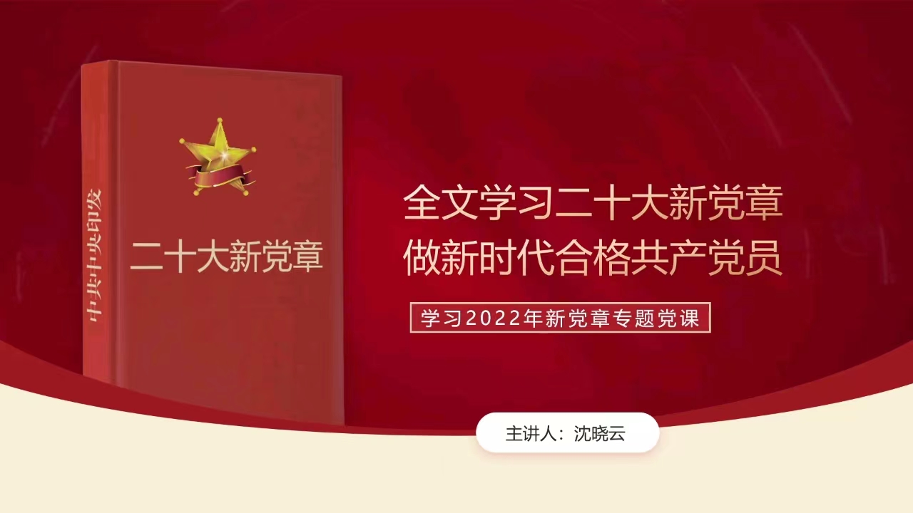 沈晓云老师以《全文学习二十大新党章,做新时代合格共产党员》为主题,分析党的二十大修改党章的必要性以及2022年党章修改的主要特点,向学员们详细讲述了新《中国共产党章程》主要修订内容,希望学员们带着剖析学、带着问题学、带着对比学,以党章为“灯塔”。沈老师的讲述使学员们对二十大新党章有了更深的学习与理解。
