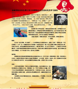 本科生第三党支部组织开展“追忆雷锋,学习精神”主题党日活动,党员们以组队或个人形式,了解雷锋同志的光荣事迹,相互交流分享并学习,加深对雷锋精神的体会。斯人虽远去,精神永长存。小至帮助身陷困境之人渡过难关,大到践行“诚信友善”核心价值观,望吾辈青年自觉践行奉献精神、投身民族复兴,自觉服务社会、服务人民。