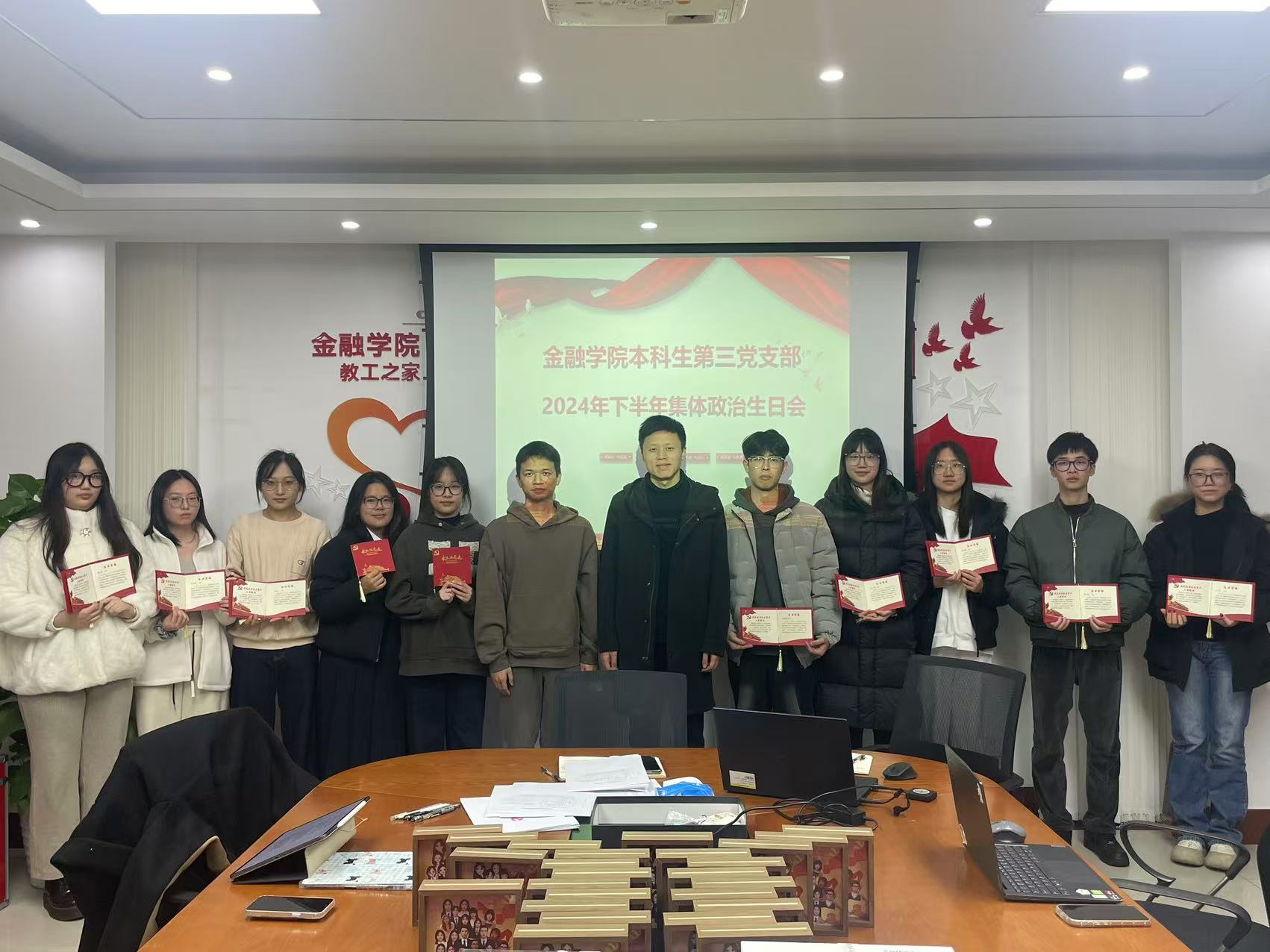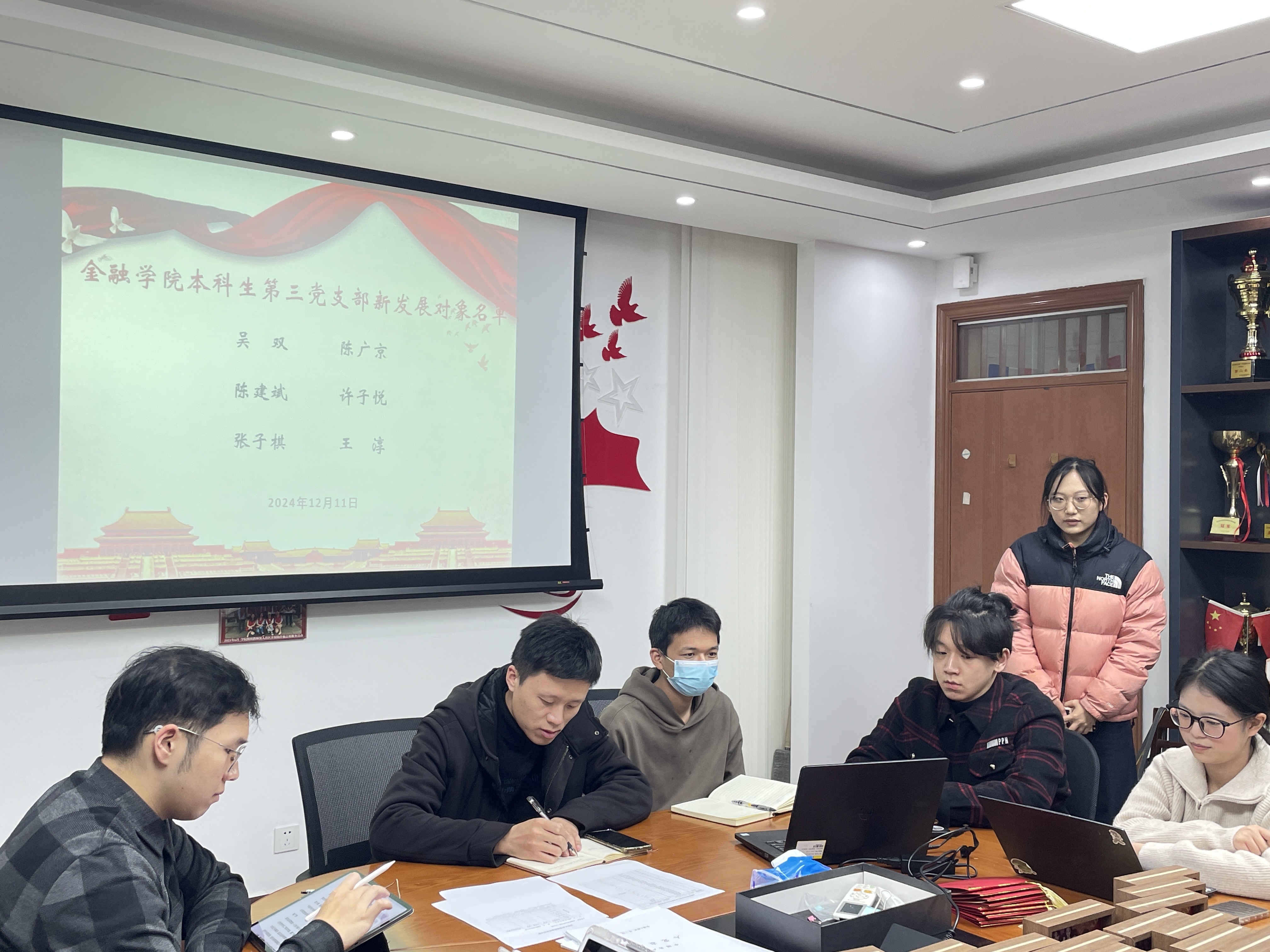 本科生第三党支部在学院楼党员之家召开党员发展和转正大会暨政治生日会主题党日活动,全体支部党员出席参加,会议由支部书记陈信主持。