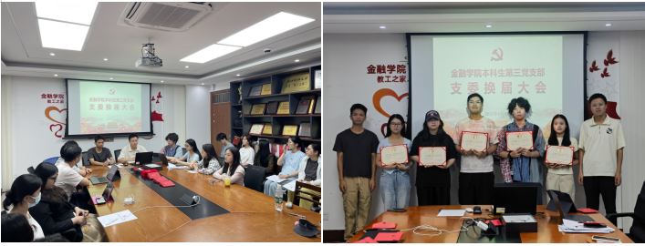 接下来进行的是支部换届工作。上一届支委依次对任期内工作进行全面总结,分享履职感悟与经验教训,同时为未来发展方向提出建设性意见与美好展望。随后,按照组织程序,根据支部提名,会议选举并产生新一届的支部委员会。陈安琪、赵子豪同志担任支部负责人,陈颖同志担任支部组织委员,史佳妮同志担任支部宣传委员,徐和洋同志担任支部纪检委员。新一届支委成员们表示,将继承和发扬支部的优良传统,团结协作,开拓创新,带领支部全体党员在党建工作中取得新的更大成绩,为学院的发展贡献更大力量。