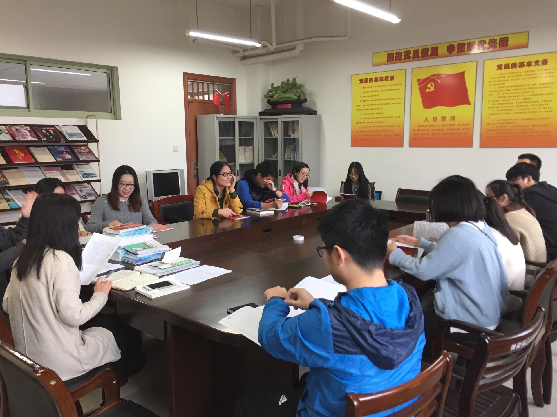 2016年11月17日下午,猫都论坛 本科生第四党支部在学院楼403召开了学习贯彻党的十八届六中全会精神会议,支部负责人王伟伟主持学习会议。