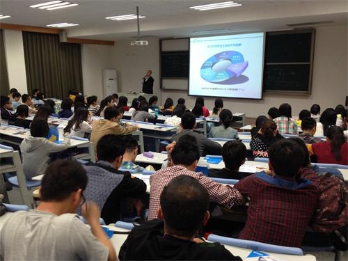 讲座一开始,王岸欣博士就从同学们最关心的就业现状开始分析,列举了各类高校毕业生的就业率水平和不同性质企业的工薪情况,分析了研究生与本科生的就业区别和优势,如何进行人生规划以及在寻找工作的过程中需要注意的问题。随后,王博士就“如何成长为一名优秀的金融分析师,买方分析师和卖方分析师的区别及职场新人该如何取舍,关于卖方分析师独立客观性的调整,如何撰写分析报告,行业分析师、策略分析师、宏观分析师的职业发展路径,国内分析师的现状、机遇与挑战”六个方面重点解析了金融分析师的工作内容以及想要成为金融分析师需要做的准备。随后,王博士以自己的亲身经历和同学们分享了在求学阶段和职业的选择与坚持过程中的丰富经验,并通过统计数据向同学们展示了坚持与不随大流对职业生涯特别是金融分析师的重要性。