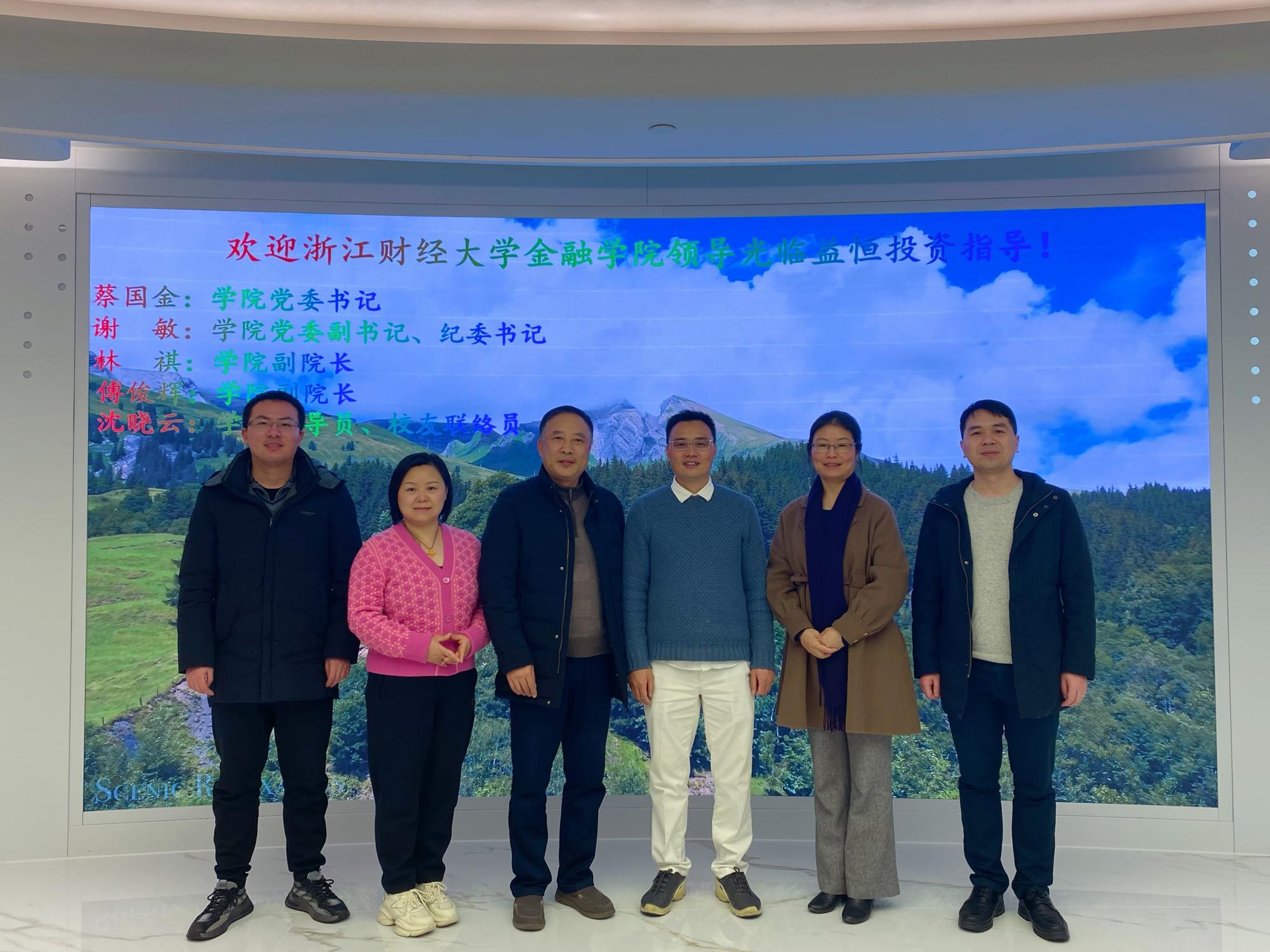 徐冠华代表浙江益恒投资管理有限公司对学校、学院领导一行的到访表示了热烈欢迎,他介绍了益恒近年来的发展情况,他表示,公司有近60%的浙财校友,财大为益恒输送了中坚骨干力量,益恒非常重视大学生实践能力的培养,只有在工作岗位上实践操作,才能检验岗位匹配度。益恒将积极回馈母校,与学校在实习实践、产教融合等方面紧密合作,实现共建共享共赢。双方围绕复合型人才培养、金融实训中心建设展开了深入探讨。