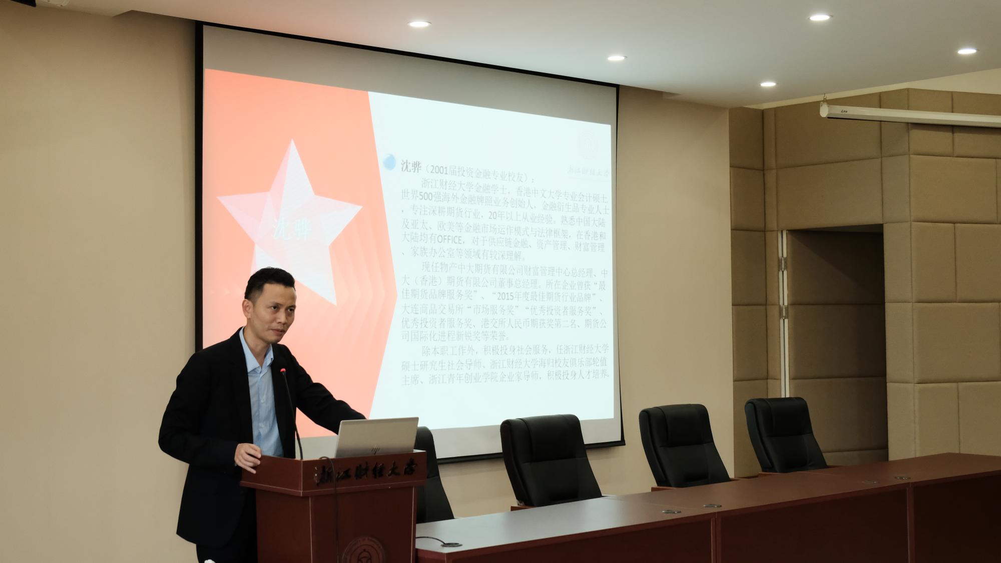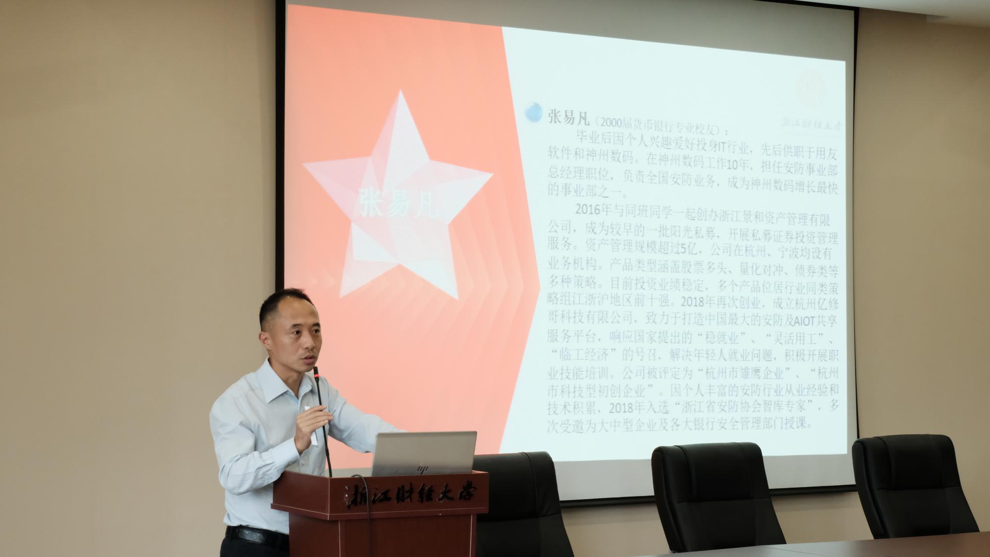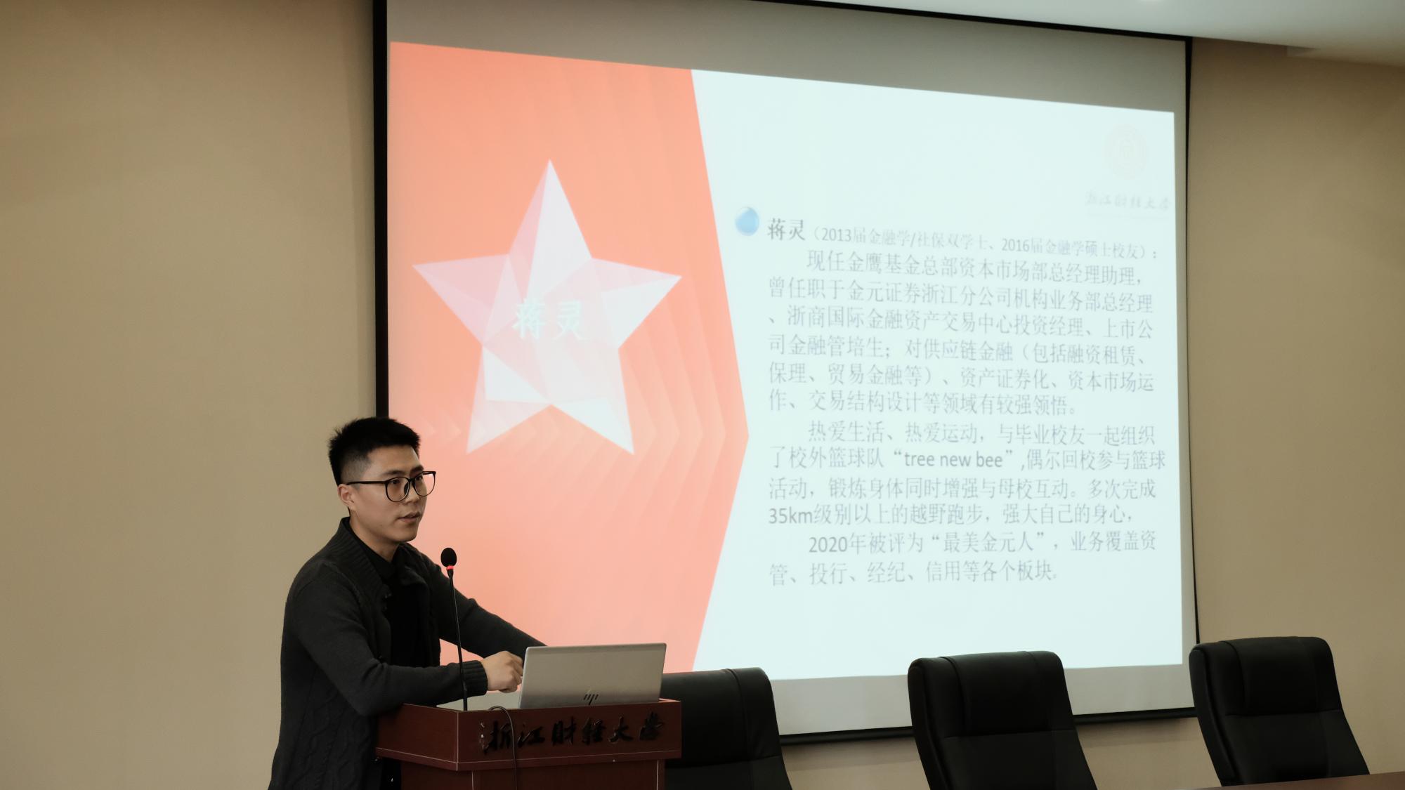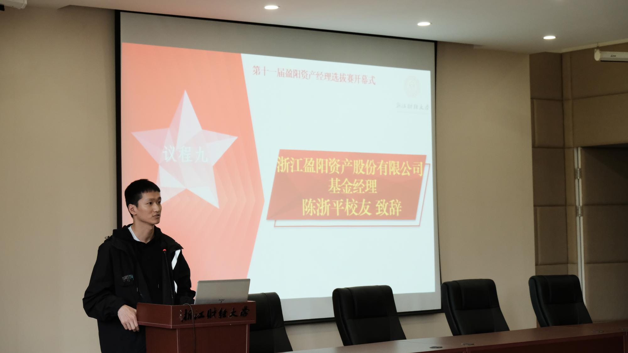 探索股市奥秘,玩转投资风云是许多金融学子的梦想。每年由盈阳资产支持的基金经理选拔赛都会吸引一大波金融学子参与其中。开幕式上,在场师生通过短视频了解了本届比赛的情况。随后,浙江盈阳资产管理股份有限公司基金经理陈浙平校友代表讲话,他向大家简单介绍了基金经理的工作内容,鼓励同学们积极参与比赛,同时预祝同学们取得好的成绩。