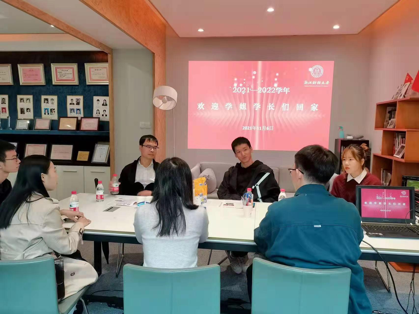 团委书记王伟伟老师、21级辅导员刘仰璟老师、金融学会现任会长方嘉鹏以及亲爱的校友们——李启兵、陈浙平等历届金融学会会长欢聚一堂,共同探讨金融学会的未来以及分享投资经历,开展了一场精彩的会长论坛。