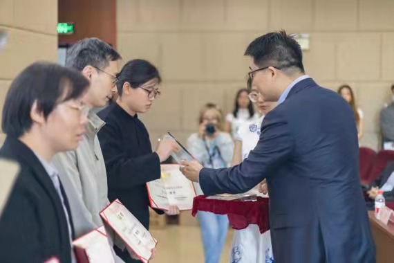 经评审,徐立平、徐函、金骋路、徐峰、邵玲洁五位老师获得2021年“盈阳金融突出贡献奖”育人类银奖。楼栋校友为获奖教师颁发了获奖证书及奖杯。