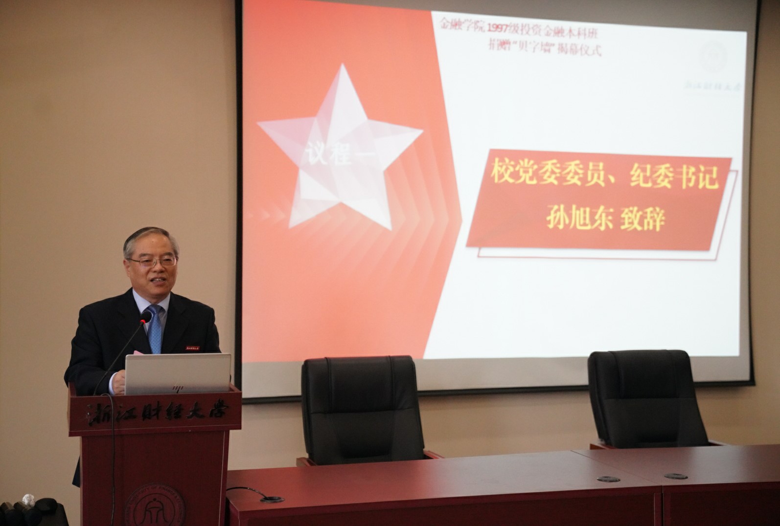 2001届投资金融专业校友在返校之际为学院送上了一份特殊的礼物:“贝字墙”。校领导、学院领导和校友代表共同为其揭幕,相信它将成为猫都论坛