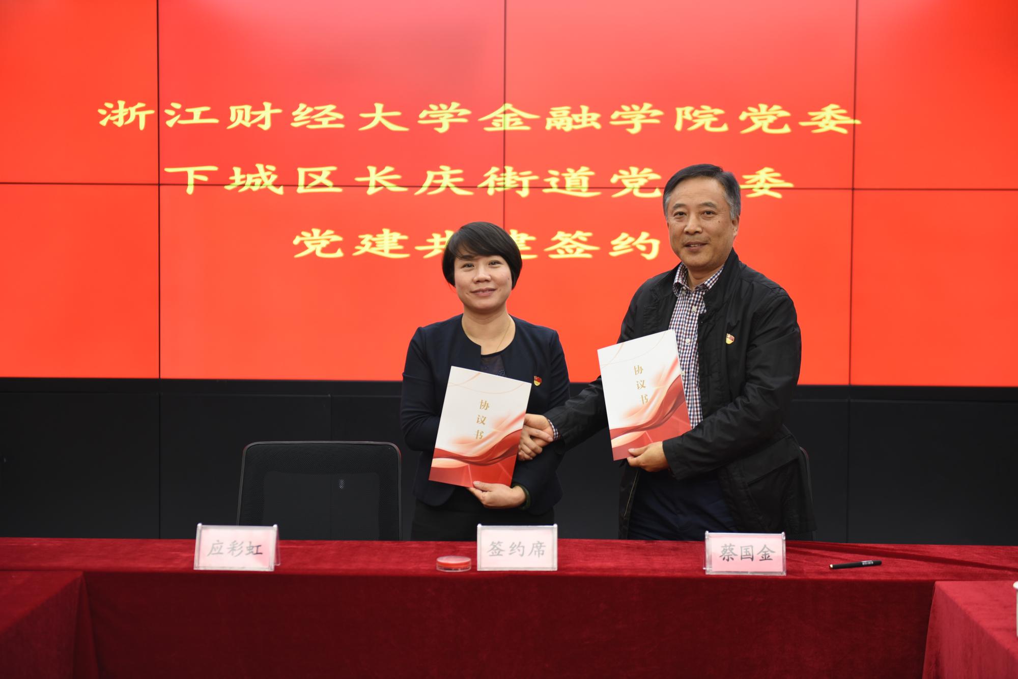 1999届优秀校友、长庆街道党工委书记应彩虹,并签订党建共建协议。学院党委副书记叶秀等出席签约仪式。