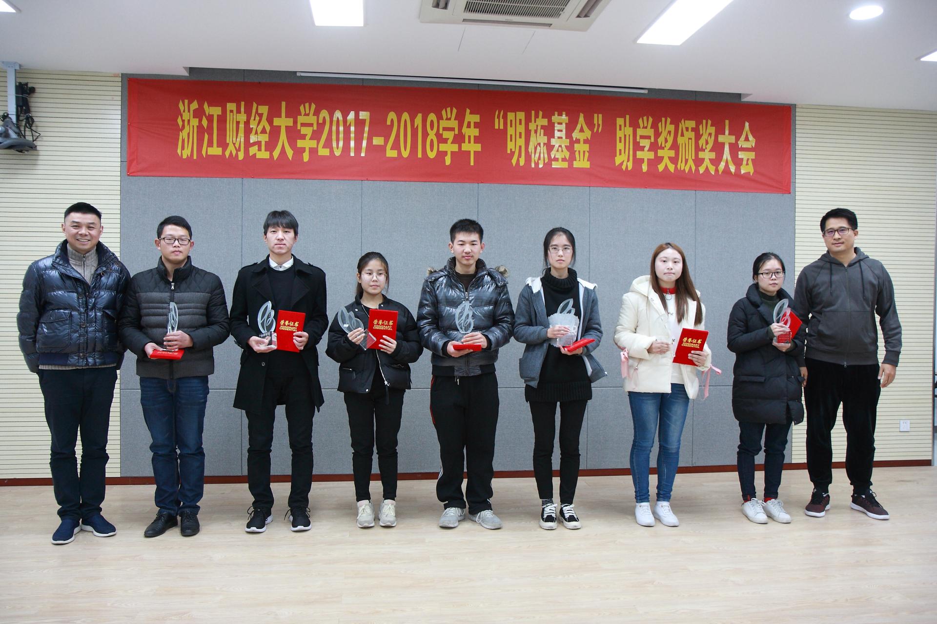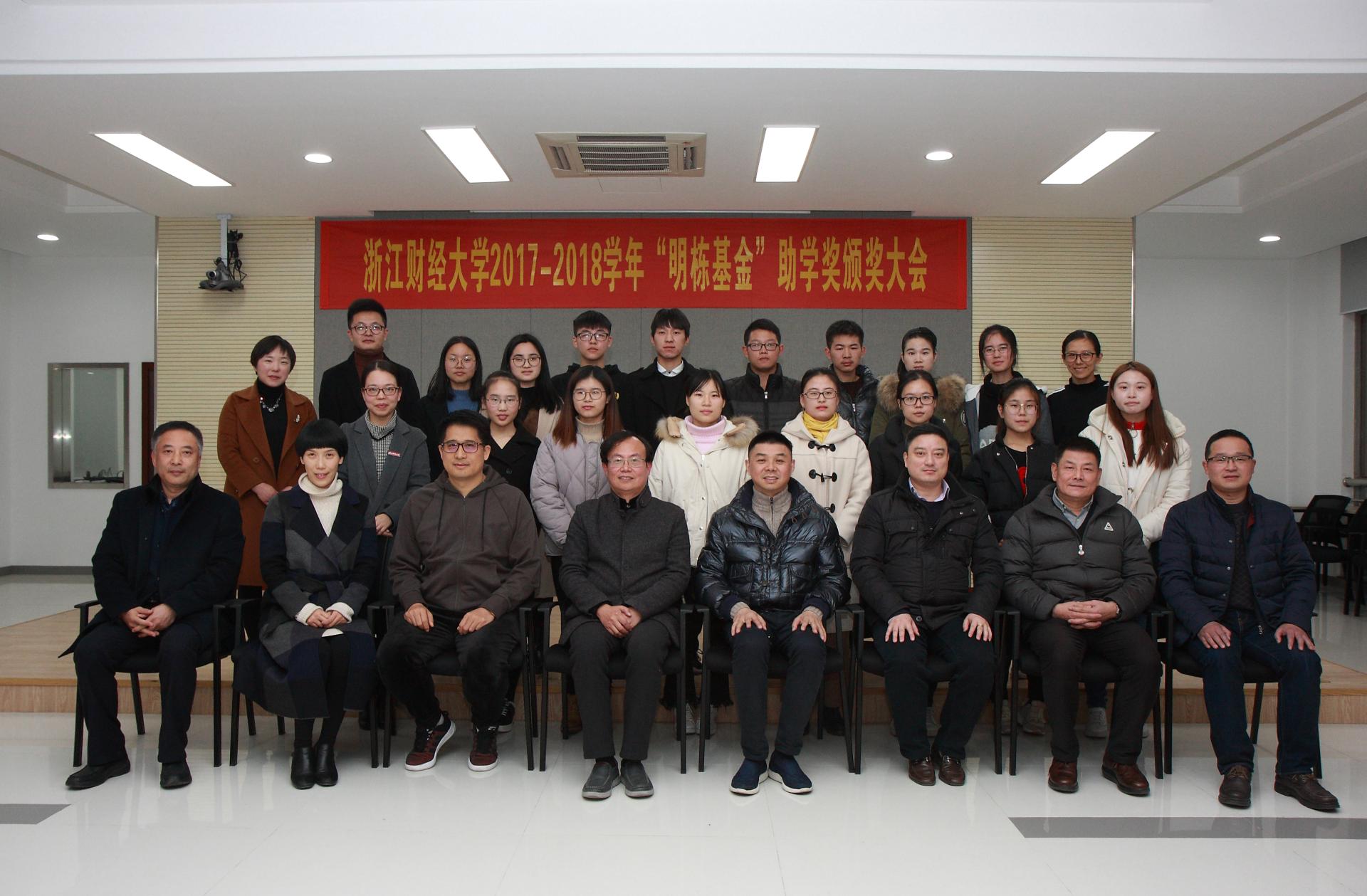 12月19日下午,2017-2018学年“明栋基金”助学奖颁奖大会首次在校友企业蓝山投资有限公司举行。蓝山投资有限公司董事长王晓明,浙江盈阳资产管理股份有限公司创始人楼栋,蓝山投资有限公司总裁王柳琳,关瑞慈善基金会执行会长吕霞,校友总会副会长兼秘书长、副校长黄建新,校友总会办公室、校教育基金办公室主任马亦群,校学生处处长范建锋,校友总会副秘书长、猫都论坛