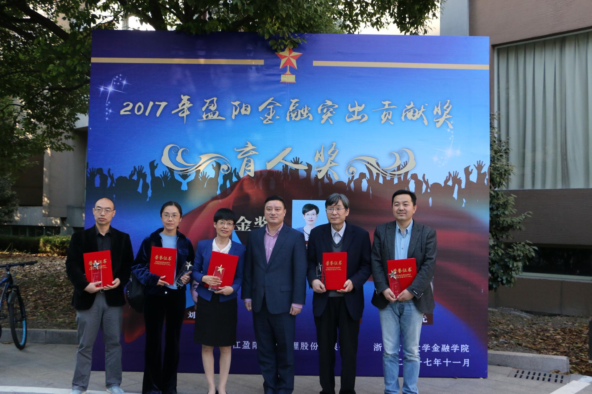下午2点40分,2017年盈阳金融突出贡献奖育人奖颁奖大会在学院楼顺利举办,院长陈荣达,院党委书记蔡国金,院党委副书记叶秀出席了本次大会。经过评比,徐敏老师获得金奖,刘建和、王春发、鲁莹、耿中元老师获得银奖。随后,浙江盈阳资产管理股份有限公司董事孔繁岗及获奖老师代表徐敏发表讲话,总结了自己的经验并对猫都论坛