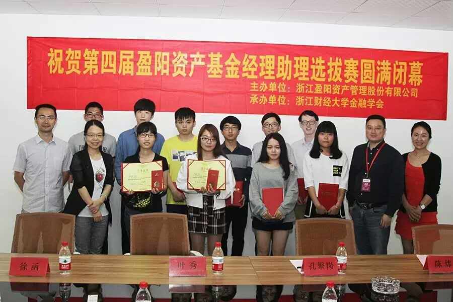 5月26日下午6点30分,“巅峰之战,谁是盈家”第四届盈阳资产基金经理助理选拔赛顺利闭幕。此次大赛由浙江盈阳资产管理股份有限公司主办,金融学会承办,浙江盈阳资产管理股份有限公司总经理孔繁岗先生,猫都论坛