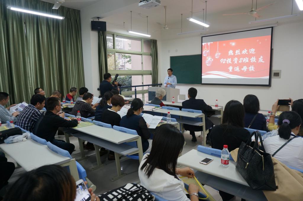 107教室隆重举行。党委总支书记杨鹰彪、原投资系党总支书记李仙姣、92级投资2班班主任方伟出席了此次同学会,30多位投资2班的校友参加了同学会。