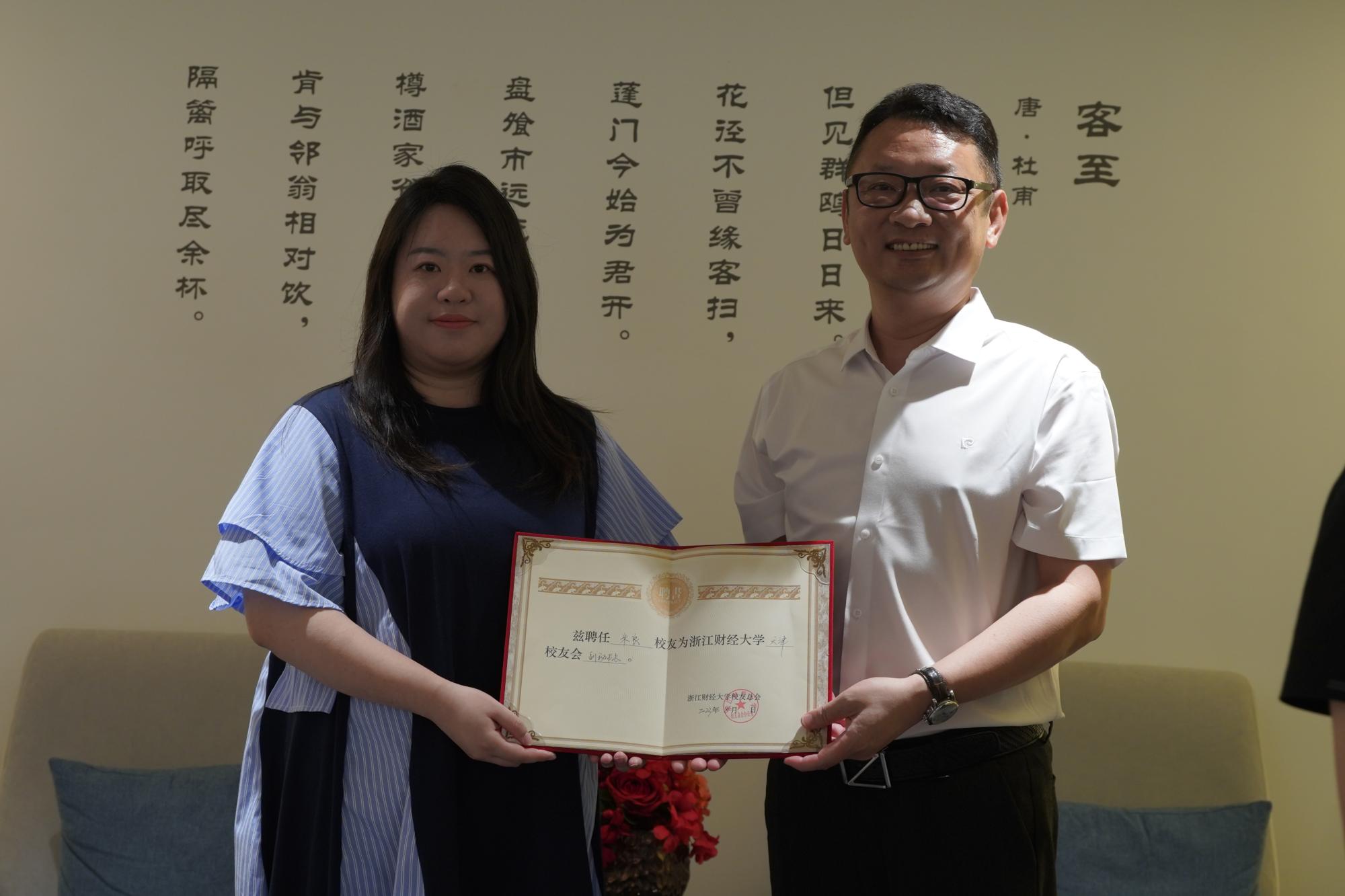 会议通过了天津校友会理事会增补名单。凌翔增补为天津校友会副会长兼副秘书长,米良、马健行、李思陶、袁伟豫、郝禹增补为副秘书长。孙旭东向新增补的副会长兼副秘书长颁发了聘书,李亚明会长向增补的副秘书长代表颁发了聘书。