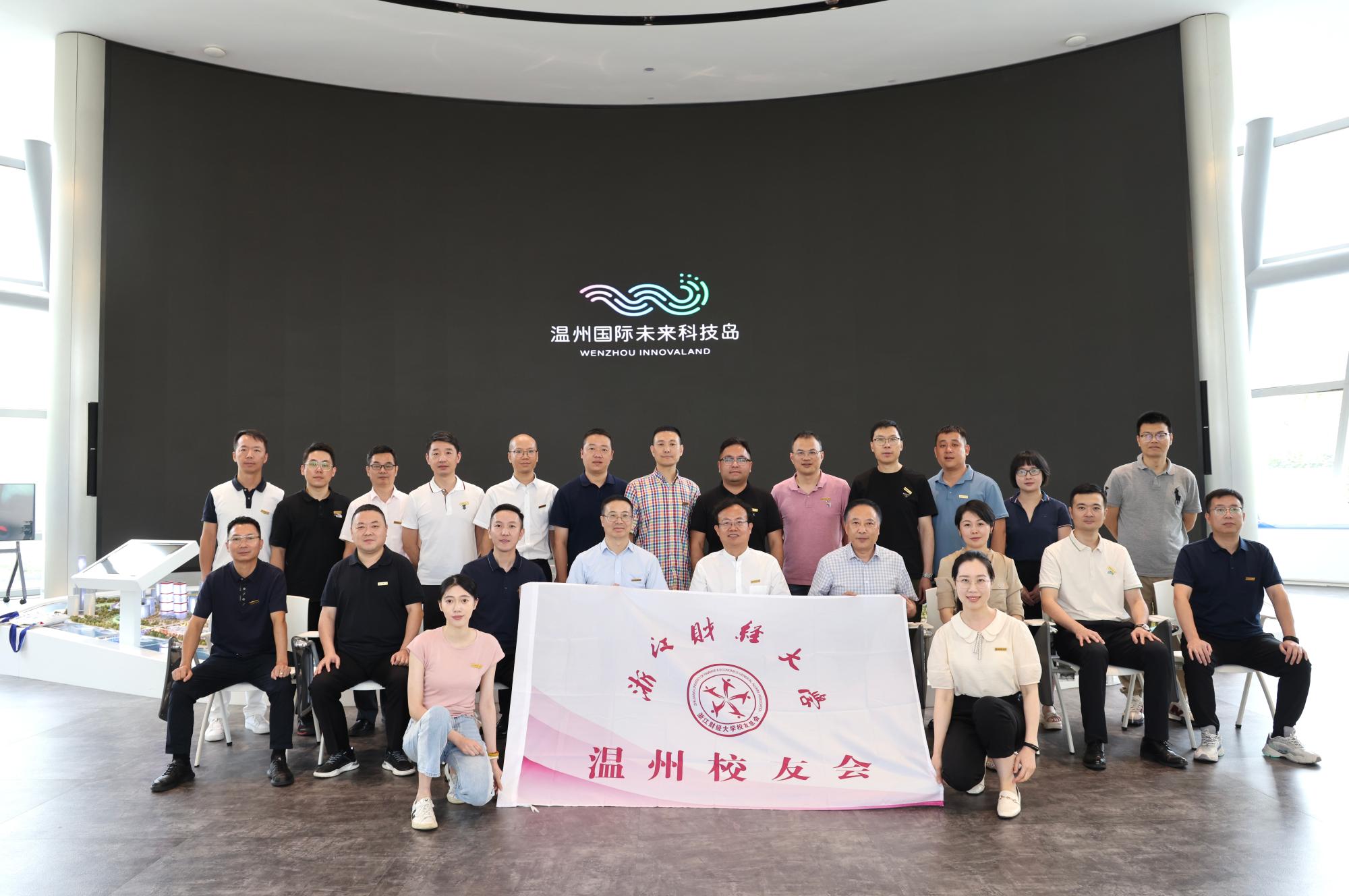近日,校党委副书记、校友总会副会长黄建新走访看望温州校友,出席温州各市县区校友代表座谈会,并为第八家“浙财人•家”——温州金融科技文化中心4号楼空间进行授牌,受到了潘强、章万真、戴中坚、陈孝雨、孙科、林如憶、李坚、项方伦、林为贤、管佐馀、林毅、蔡叶波、张瑜瑜、夏维国、翁承权、钱潮、李铭思、金玉琼、徐一云、胡耳东、陈一儒、蔡海鸣等校友的热烈欢迎。