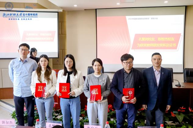 获奖教师代表们通过分享自身科研工作经历,表示深厚的学识积累、深刻的社会洞察和深入的学科融合是培养“浙财金生”、健全育人体系的的重要抓手,课程体系应与时代发展同脉搏、共进步,也表达了对学院发展的肯定及盈阳资产管理股份有限公司的感谢。