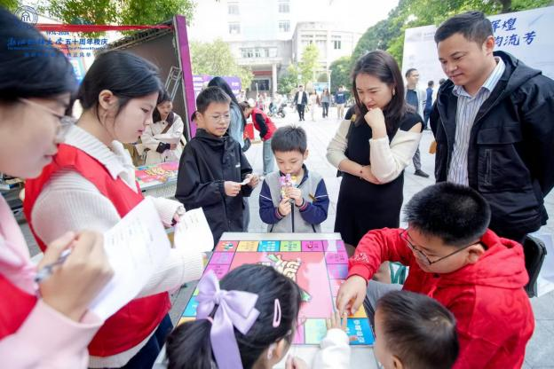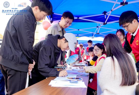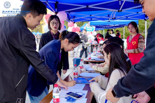 浙财有你我,五秩正风华。恰逢浙财五十周岁诞日,校友们不远万里,赶赴邀约,欢聚叙昔情,共赴贺诞辰。学院为迎接校友们的到来,精心设计并开展了趣味横生的金融知识小游戏,校友们通过打卡系集章获得抽奖资格,领取学院为校友们精心准备的礼品。小游戏包括金融“大富翁”、拍照打卡、套圈资金等等。此外,学院特地设置了一面校友寄语墙,签名留念的同时,校友们对母校和学院的热爱与祝福,化作一张张信纸,嵌入信封,共绘母校五十周年。