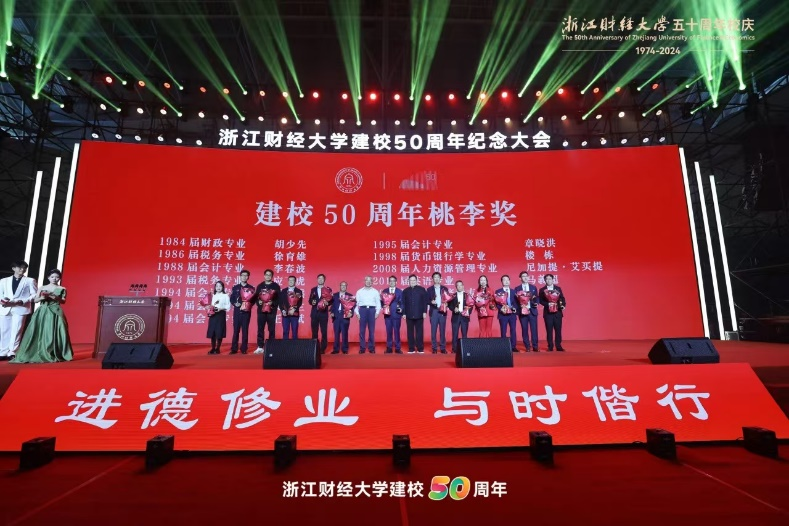 大会还举行了建校50周年贡献奖颁奖仪式和建校50周年桃李奖颁奖仪式,学院1998届校友楼栋获得50周年桃李奖。各界的嘉宾、师生和校友共同见证这一历史性时刻。
