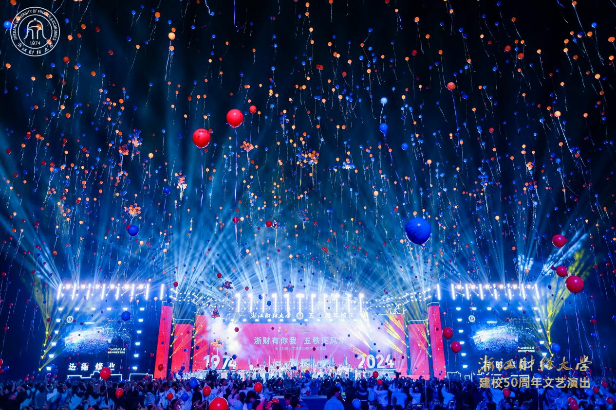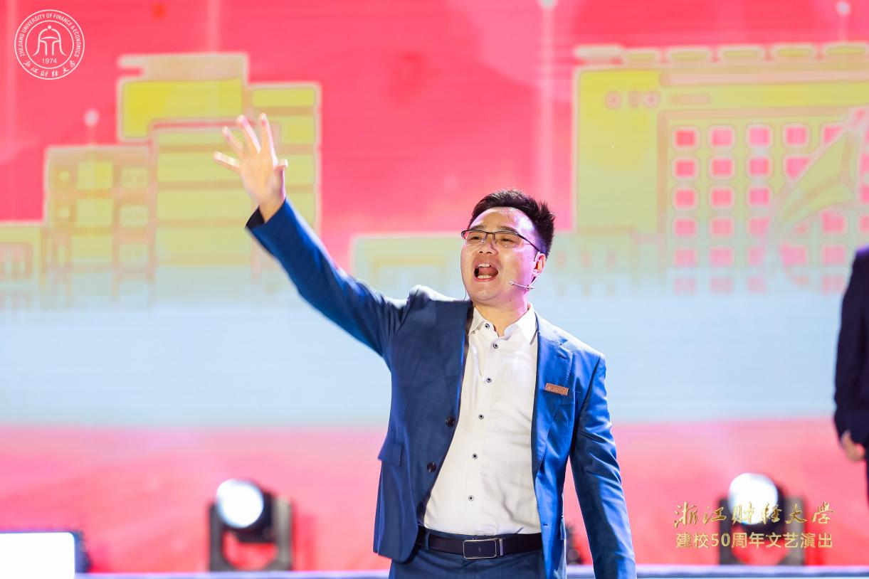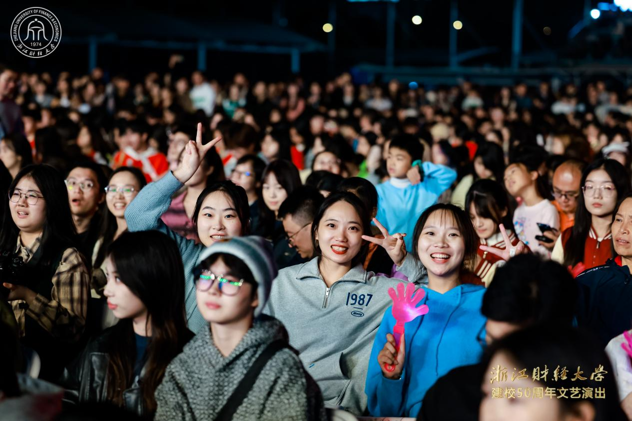 建校50周年文艺演出隆重举行。现场星光璀璨、欢声漫天。在此起彼伏的欢呼声中,迎来了“向母校报告”环节,学院2003届校友徐冠华深情表达对浙财大的爱,强调校友与学校的情感共同体,鼓励大家为国家发展贡献青春力量。金融学子和校友们深受鼓舞,应援声接连不断。