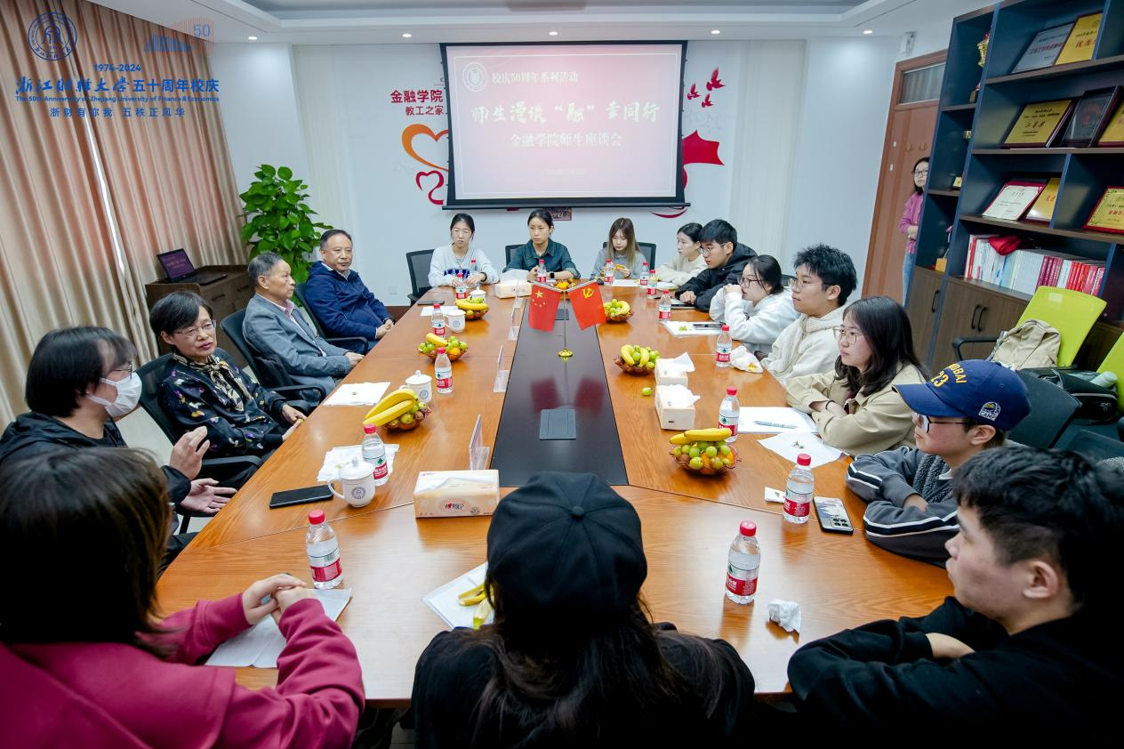 退休教职工楼远和徐敏教授为主讲嘉宾,座谈由蔡国金和徐峰老师主持。本次交流会中,学生了解了学院的历史与发展以及金融领域的行业动态。同时,教师们也结合自身经验解答了学生在学习过程中的疑问,为学生提供关于金融职业发展的建议,促进了师生之间的双向沟通。