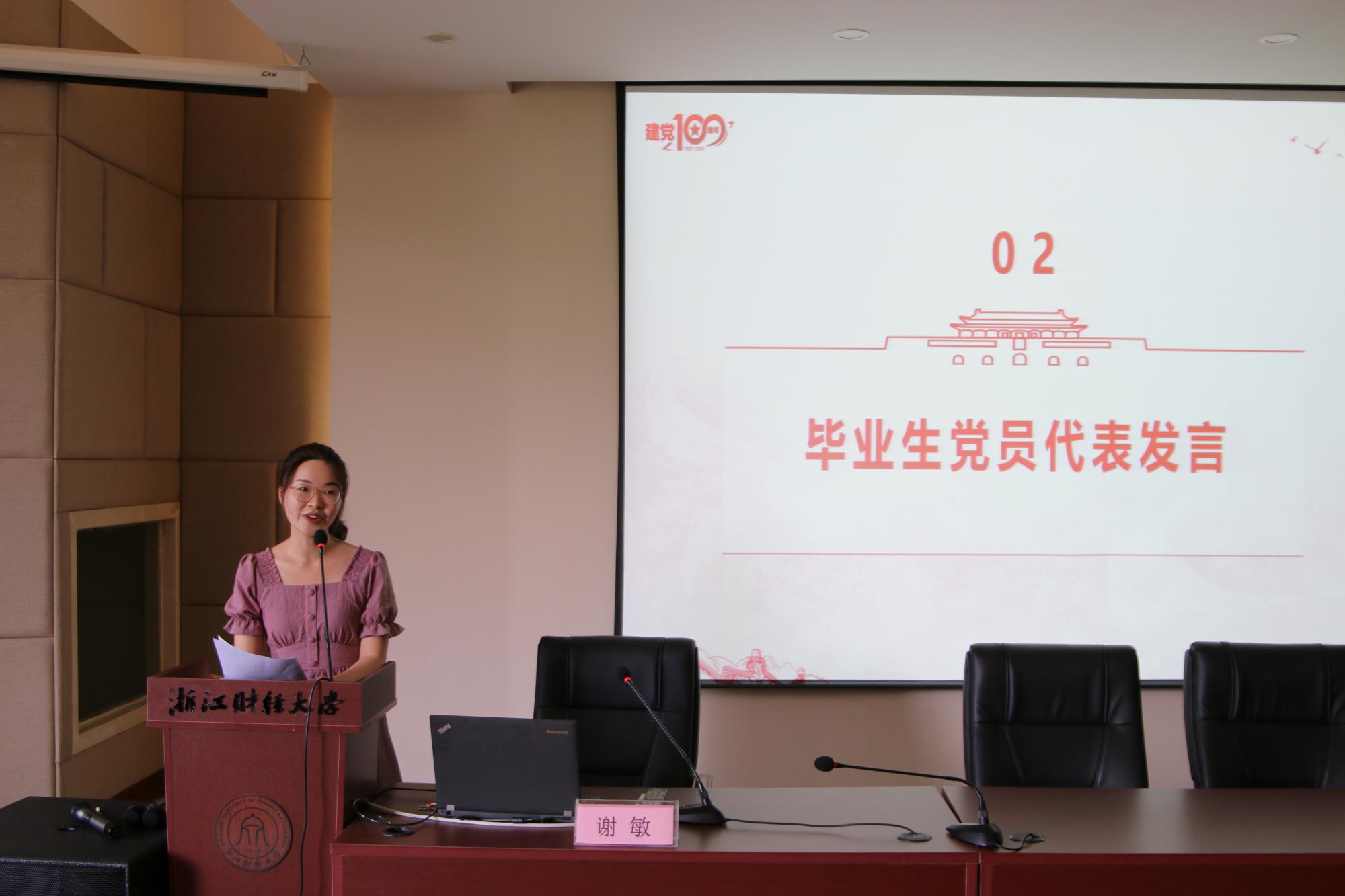 会上,谢敏以“学史力行勇担当,廉洁从业践初心”为主题给全体毕业生党员上了一堂特殊的微党课。她从廉洁之意、廉洁之义、廉洁之路三个方面强调了党员同志必须始终保持清正廉洁的政治本色,要恪守职业道德,始终不忘做人标准,坚守清正廉洁,扣好人生的第一粒扣子,迈好人生的第一步。同时,谢书记向毕业生党员推荐了《利剑高悬:建党以来十大腐败案例剖析》一书,希望大家做到学史明理、学史增信、学史崇德、学史力行,坚持全面从严治党永远在路上,保持“赶考”的清醒,时刻以党章为镜,树廉洁之心、行廉洁之事、做廉洁之人。