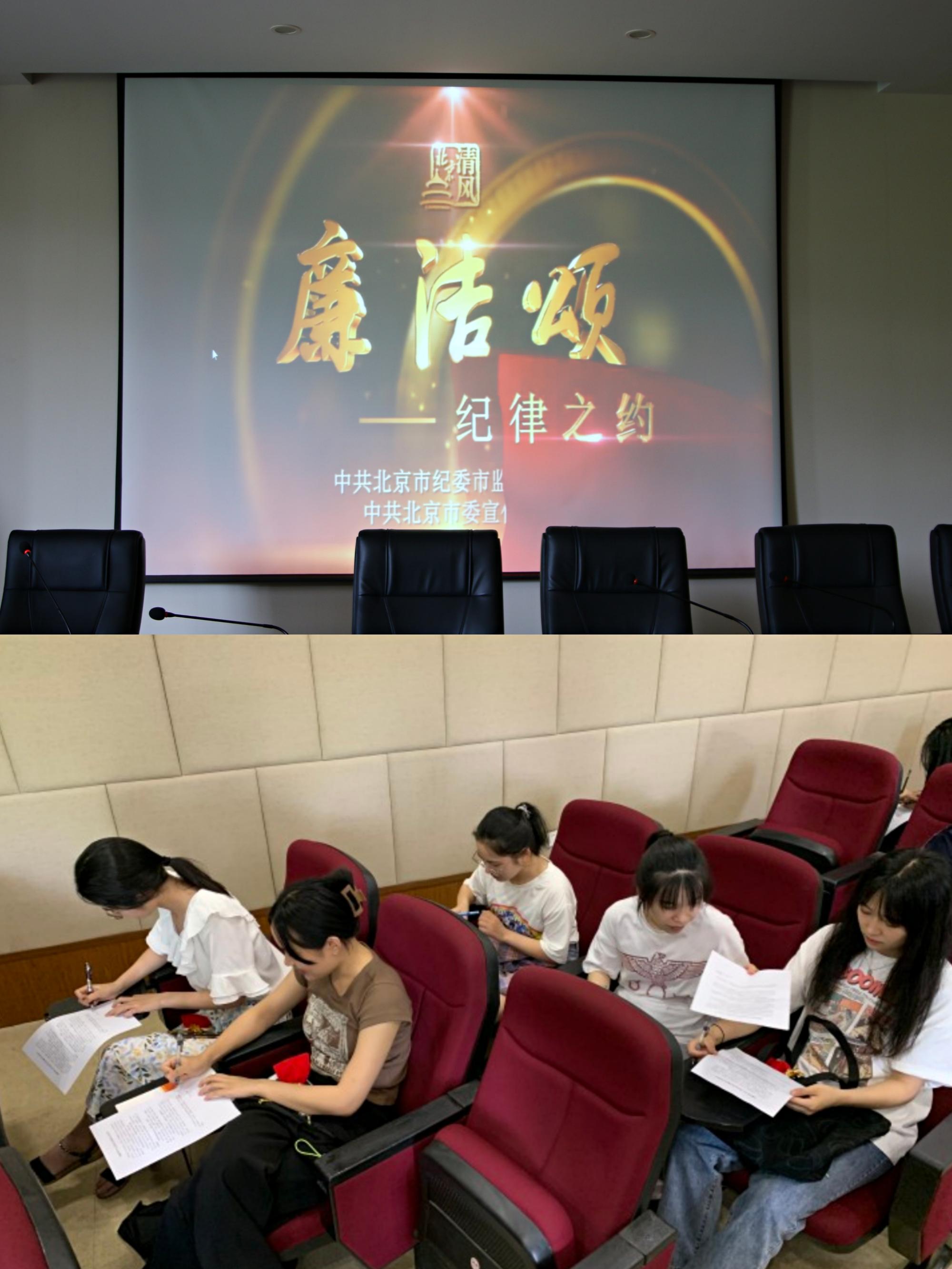 “作为青年党员,要知足常乐,保持平衡心态,见诱惑心不动,见财物心不痒”。本科生第二党支部何周锦代表全体毕业生党员在会上发言说到,她号召大家要以全新的理念来提升自身的修养,时时锤炼人格,事事廉洁从业,处处从我做起,人人争当反腐倡廉表率,个个守住内心深处那份净土。与会党员共同观看了廉洁教育影片《廉洁颂》,共同签署《廉洁从业承诺书》,警示广大毕业生党员在今后的工作生活中要时刻绷紧纪律之弦,常思行为“红线”。