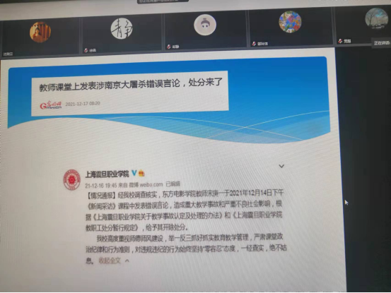 会上,谢敏首先为大家解读了近期发生的上海震旦职业学院女教师宋某不良言论事件以及由此事件所造成的不良后果,告诫全体教职工要引以为戒,要切实加强自身师德师风建设,自觉对照《新时代高校教师职业行为十项准则》、《中华人民共和国公职人员政务处分法》和《猫都论坛