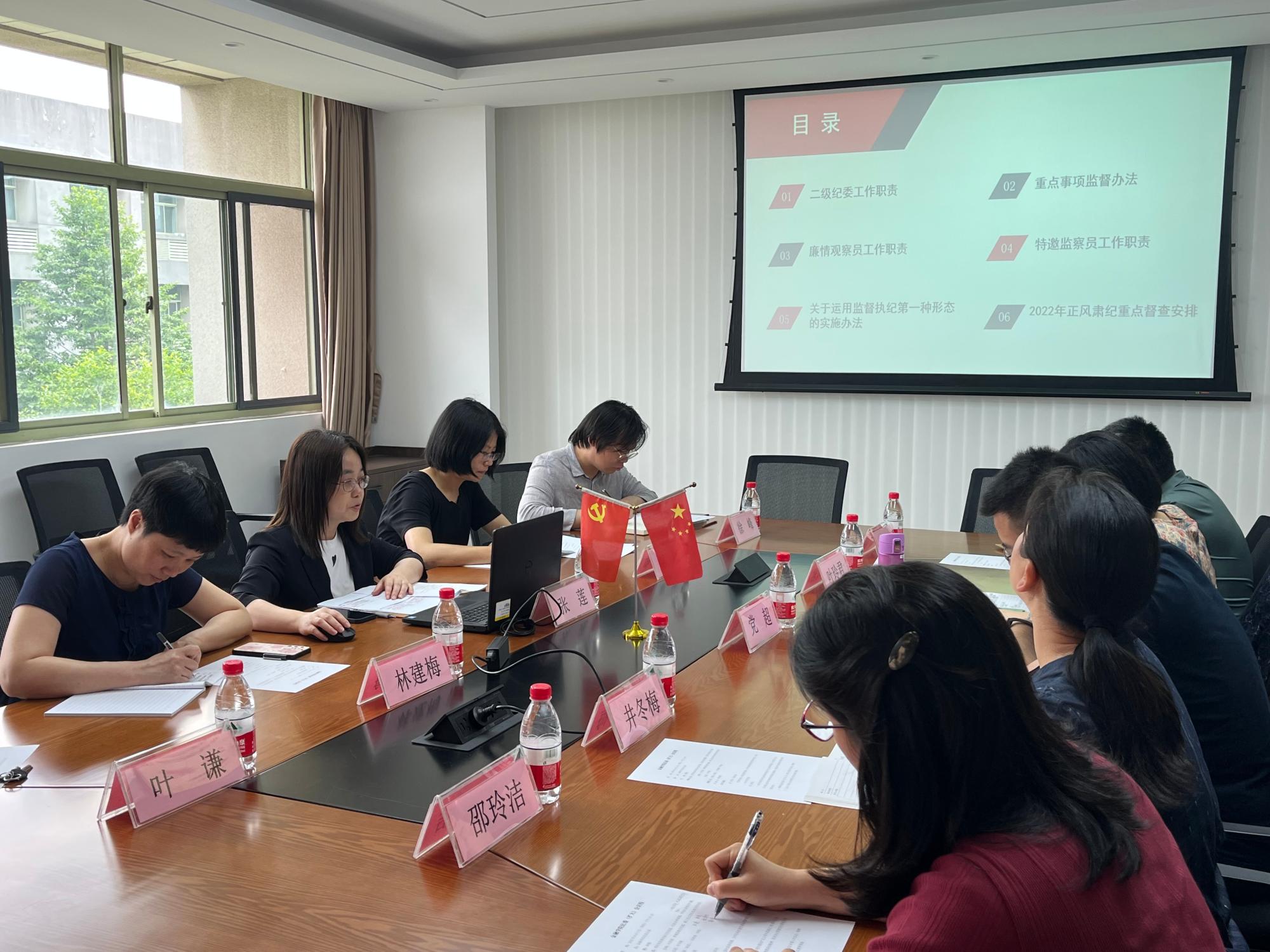 纪委开展纪检干部专题培训会。学院全体纪委委员、特邀监察员、廉情观察员、教工党支部纪检委员参加培训。培训会邀请了校纪检监察室副主任张莲、纪检员林建梅到会指导。