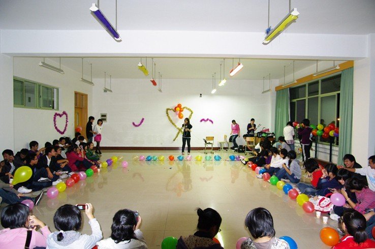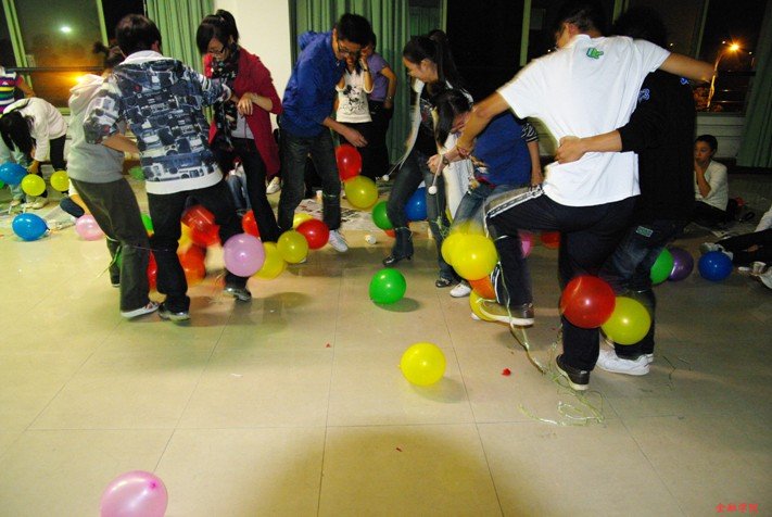 富有特色的游戏使新老生在轻松的气氛中增进了感情。接下来的新老生交流,09级新生对大学生活的困惑由老生们给他们做了一一解答。双节棍、诗朗诵,又将整个联谊会带入了高潮,最后在有趣的踩气球活动下,联谊会落下了帷幕。