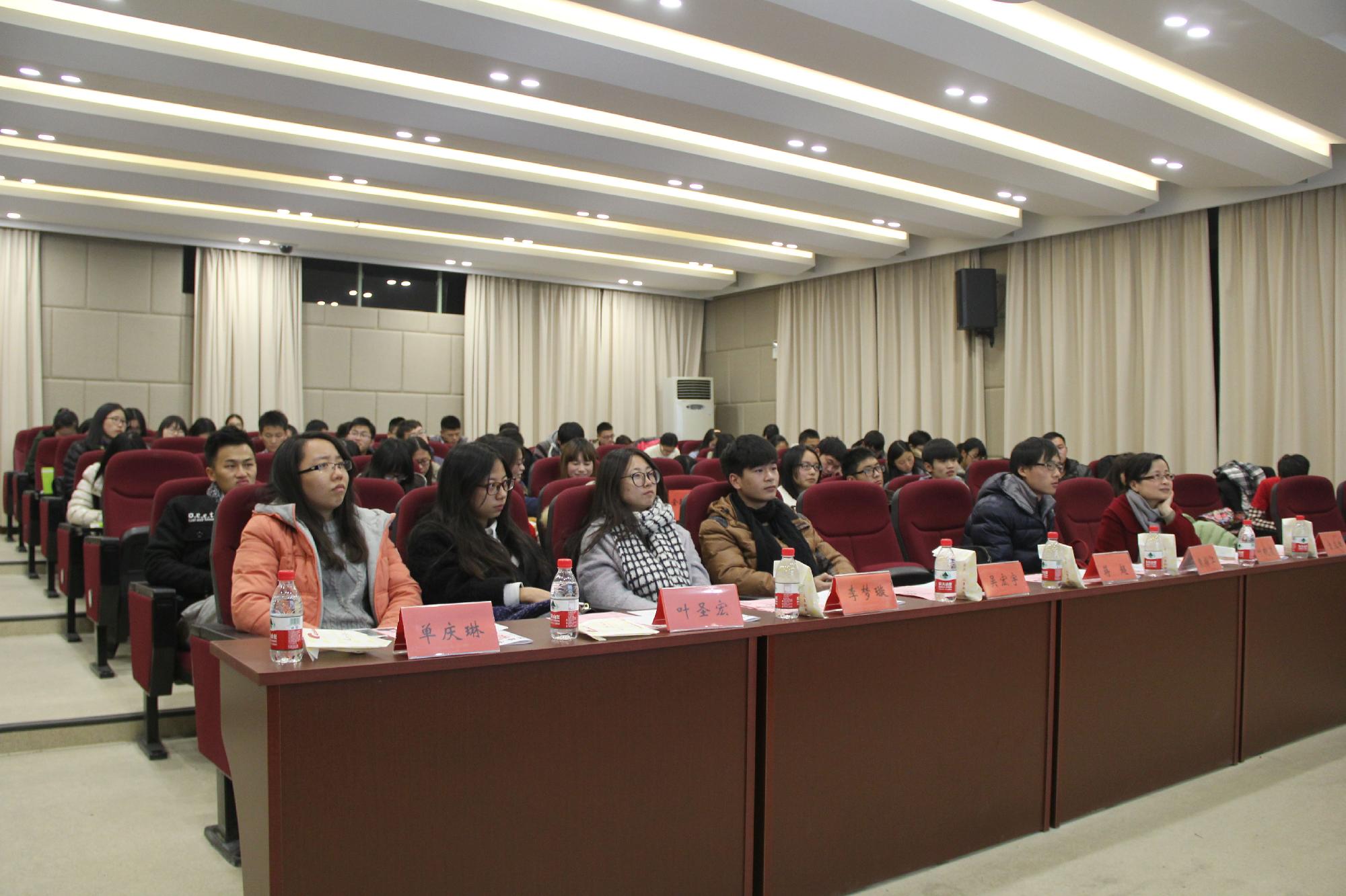 保险系主任叶晓凌老师、学生会主席团代表和学院各个学会会长。此次讲座吸引了众多同学前来听讲,现场座无虚席。