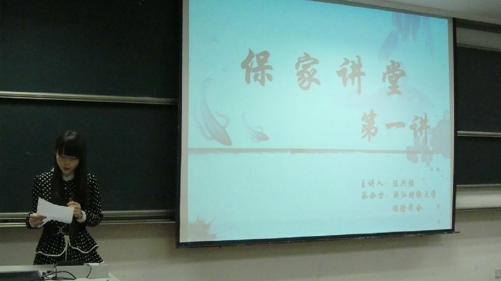 保险学会举办的保家讲堂在学院楼102教室正式拉开了帷幕。本次讲座很荣幸地邀请到了平安人寿浙江分公司运营管理部经理陈兴桢作为主讲人,同时到场的嘉宾还有猫都论坛