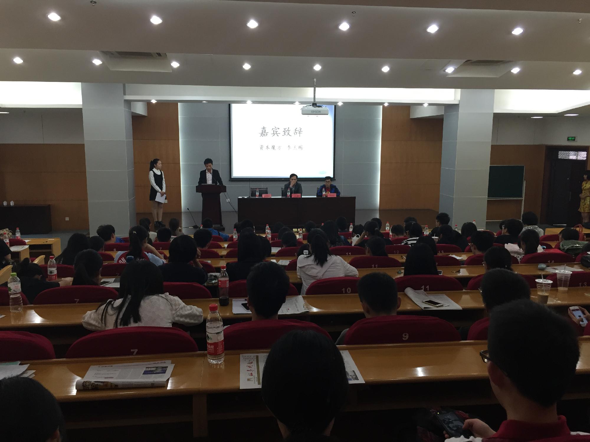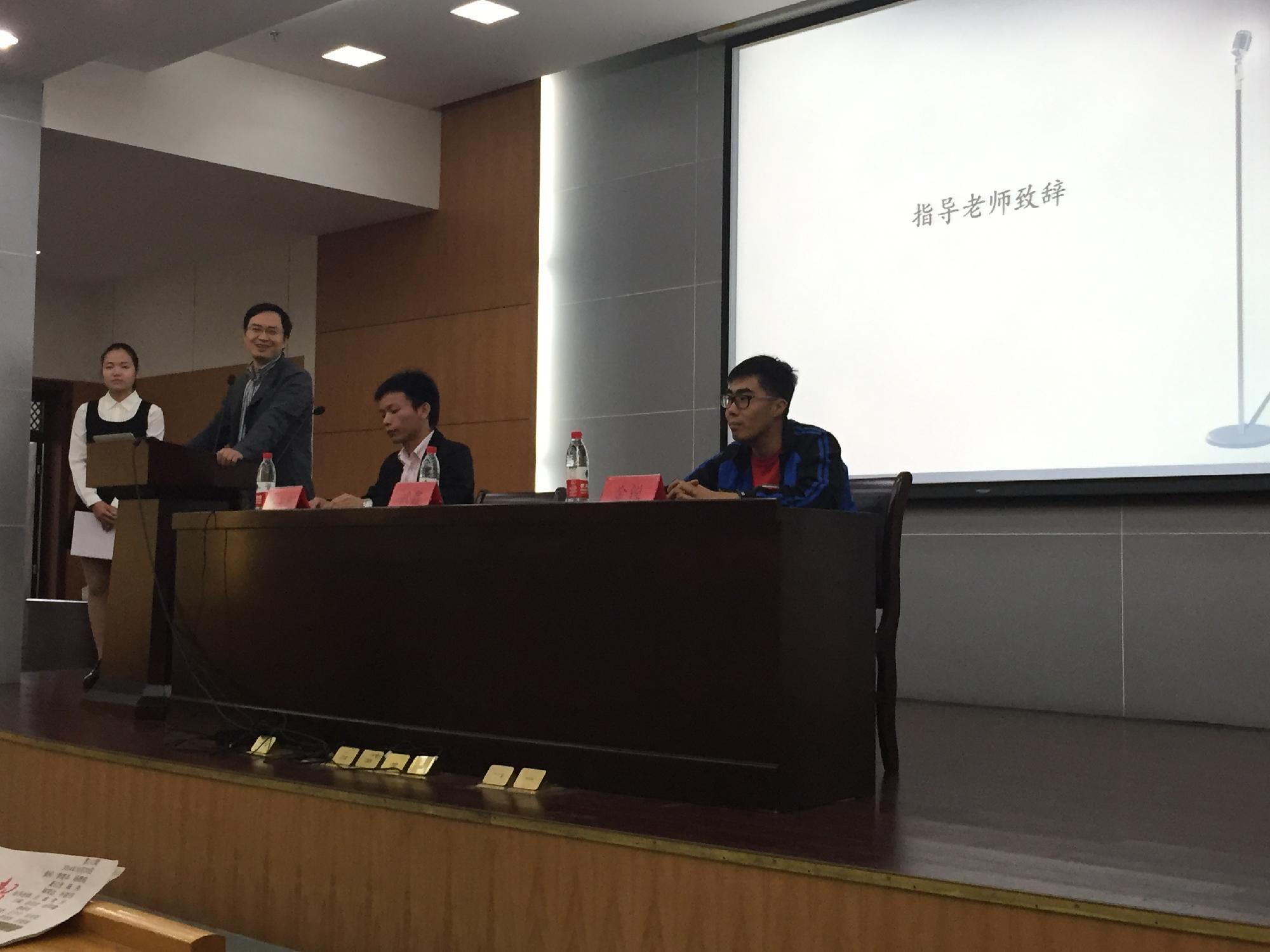 在主持人简练明了的开场白之后,资本魔方副总监李王赐先生进行致辞,他为同学们介绍了理财的重要性及资本魔方比赛平台的概况。结尾处,他以“赛出水平,赛出友谊,赛出风格”的响亮口号来表达他对模拟证券投资竞赛的衷心祝福。随后学会指导老师武鑫老师上台致辞,他介绍了比赛的历史以及比赛今后的发展方向。一番饱含鼓励的话语中承载着的是他对金融学会长远发展的殷切厚望。当武鑫老师宣布 “猫都论坛