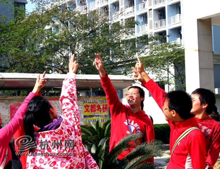 11月5日中午12点20分,浙江财经学院西大门主干道上,两句气势十足的口号吸引了刚下课的人群。四周突然涌出一群“火红”的人,迅速小碎步整好队形,齐刷刷地摆出“牛气冲天向太阳”的POSE。