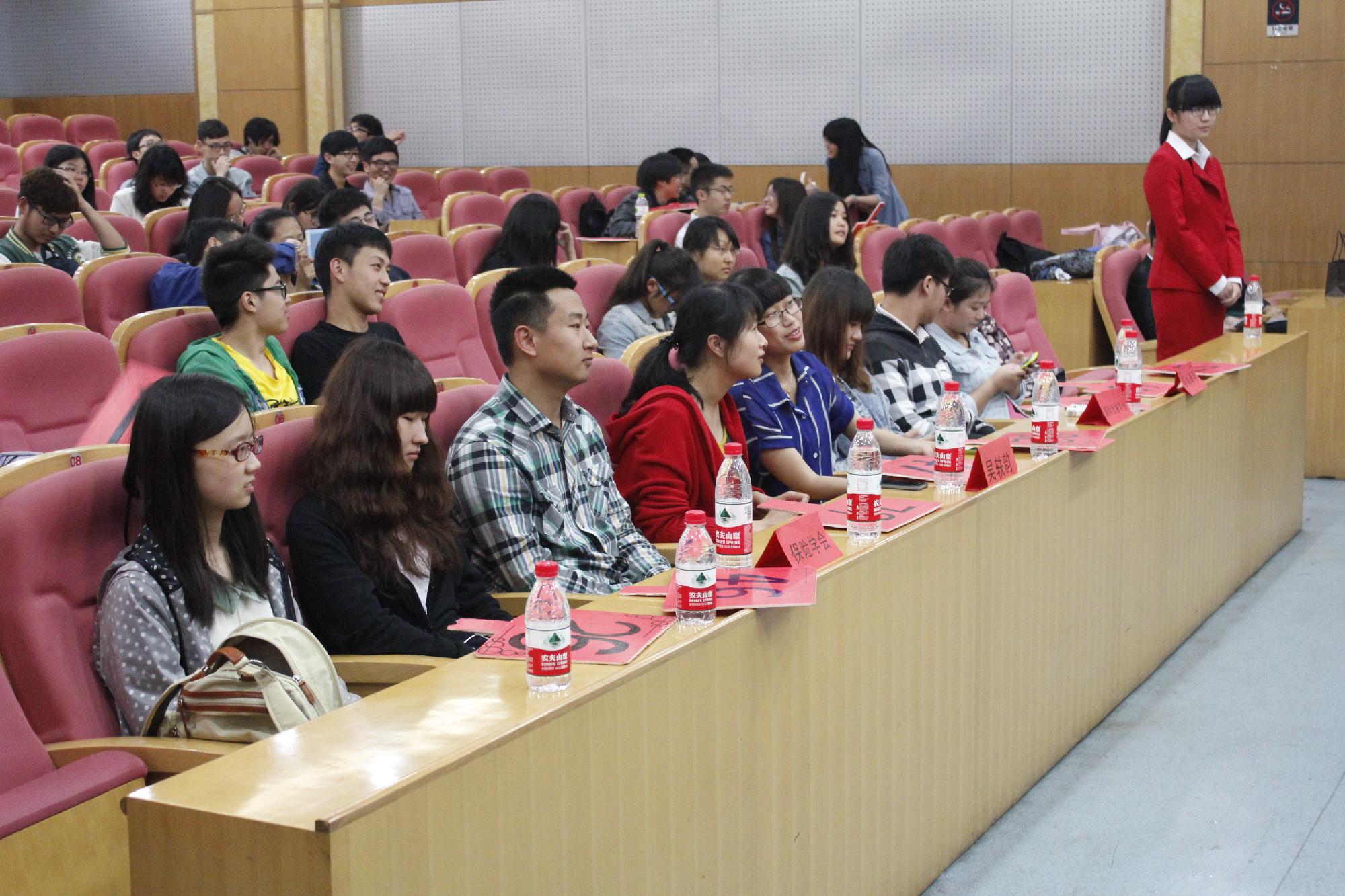 本次拍卖会还拿出几件神秘拍品。“金融第一帅”武鑫老师提供了一本自己亲手包装的书籍——《天才在左,疯子在右》。这件拍品激起了学子们极大的兴趣,大家都希望能拍下书籍表示对拍卖会以及武鑫老师的支持。现场的学生们一听完介绍,纷纷毫不犹豫地举牌,最终书籍以两倍于起步价的价格成交。为了助力大家的学业,信管学会还特意准备了“学霸套餐”。拍下本套餐的同学可以享受一名学霸的数学辅导,内容可选择微积分、线性代数和概率论。在激烈的争拍中,好学的97号竞拍者以高价拍得该套餐。这样的惊喜似乎还不够,“院花”毛琼的一组私密照也赫然出现在拍品之中。为了不让院花即前任会长照片外流,金融学会现会长张倬男参与了激烈的竞拍,最终却不敌现场毛琼的男粉丝。之后毛琼对拍品做了一段描述,并和拍下私密照的男粉丝亲密合影留念。