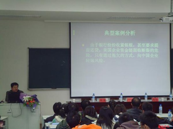 楼202教室如火如荼地展开了。活动由两大精彩的板块构成,即由浙江中大集团财务总监邬玉明先生给我们带来的关于“企业风险管理与控制”的讲座和年终特别版金融风暴。