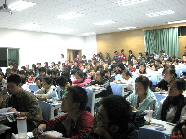 202教室组织了对话股神活动,并邀请到了金锐学长和朱天民学长作股市证券的讲座。讲座还未开始,会场已经座无虚席,不仅本学院同学积极参加了本次活动,其他学院感兴趣的同学也参加了本次活动。