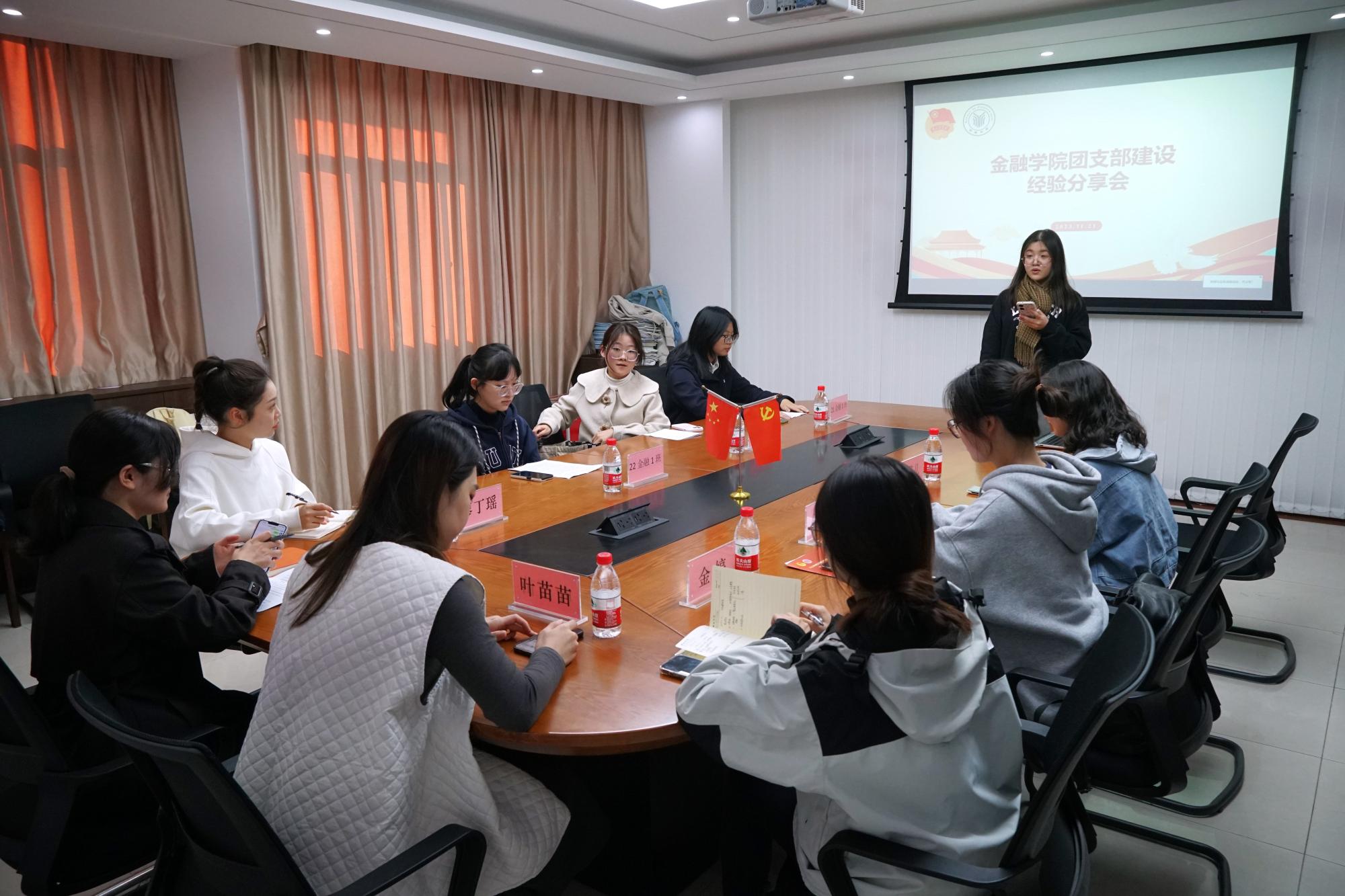 唯一连续两年获得校“先进班级”“先进团支部”荣誉称号的团支部。团支书邵岩曦同学从“学体艺创团思”六个方面介绍了班级团支部建设情况,她强调“六位一体”,共创先进,团结带领支部团员、青年听党话、跟党走。22金融1班团支书汤琳琳从打造温暖三“心”团支部的角度出发,展示了坚持“请党放心”“不忘初心”“保持恒心”的21金融1班团支部,支部坚持热心服务同学,带领全班同学德智体美劳全面发展。22金融7班团支部坚持“学思用贯通,知信行统一”的理念,团支书陶乐围绕“学习”主题,支部充分发挥支委骨干力量,建设学风优良班级。
