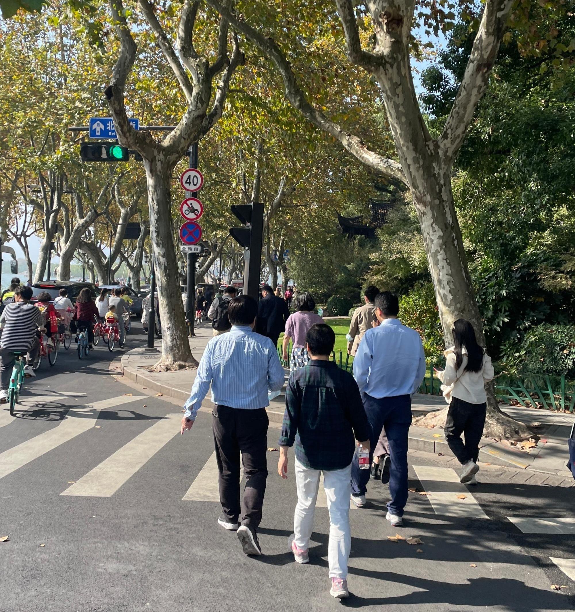 本次活动游览的景点是杭州西湖。当日清晨,大家乘座大巴前往目的地。沿途中,教师们步行环西湖走欣赏风景、聊风俗人文、不亦乐乎。
