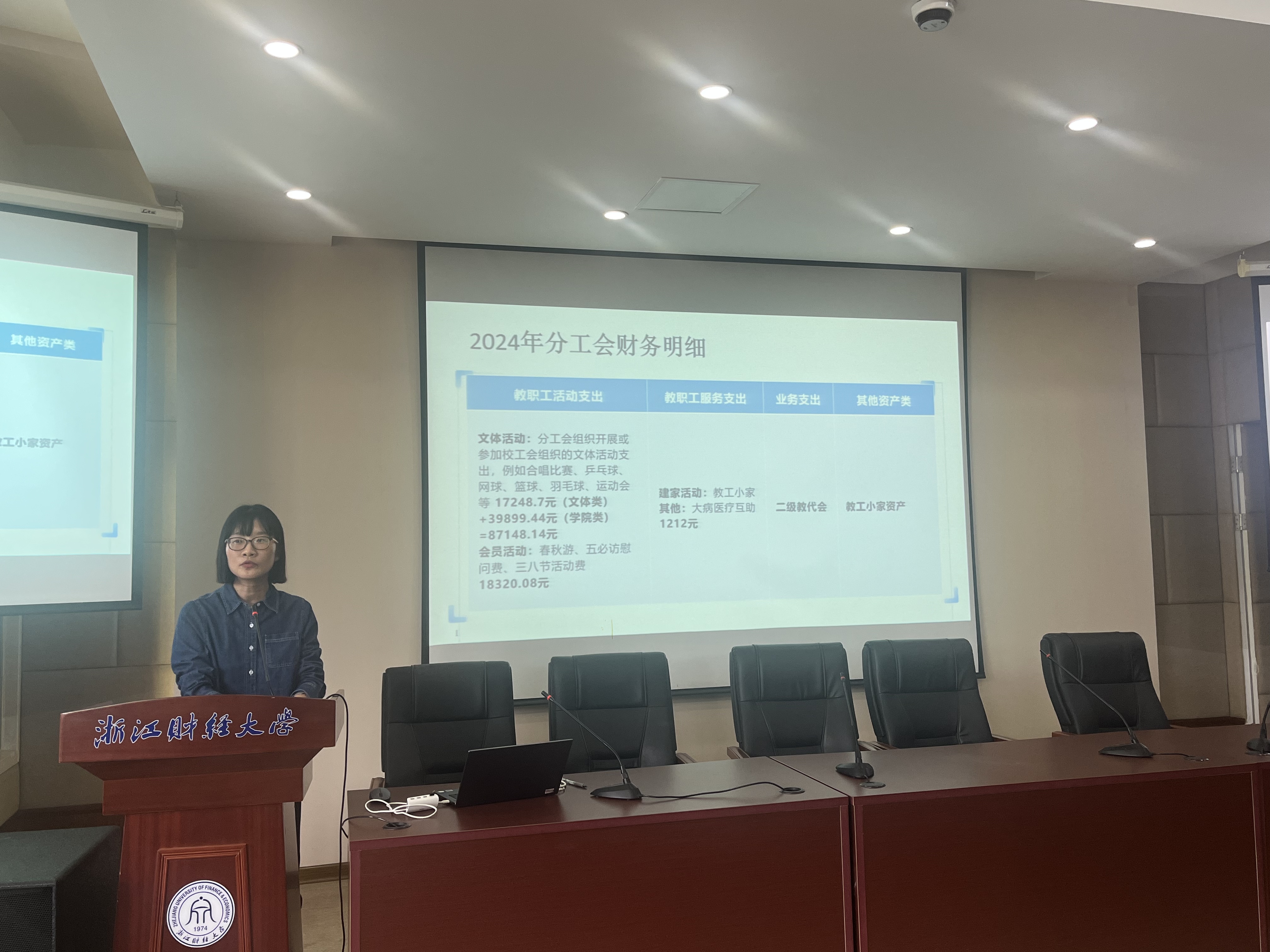 2025年3月27日,猫都论坛 召开教职工大会,会上副书记陈思佳同志向全体教师介绍2024年度分工会整体工作及经费使用情况,公开展示了分工会财务收支账目及具体使用清单,接受全体分工会会员的监督、意见与建议。与此同时,陈书记介绍了今年校院两级工会工作的整体安排,其中包含分工会活动、二级教代会会议等。