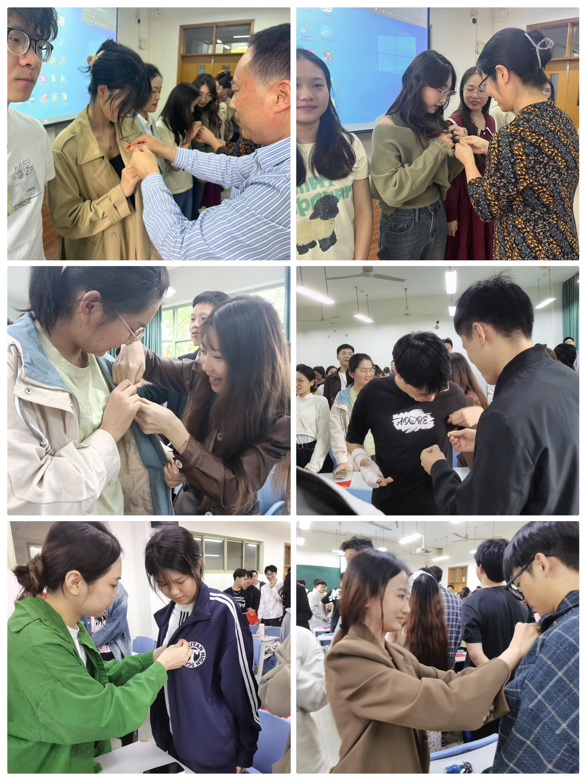 与会老党员为全体新发展党员佩戴了党员徽章,鞭策新党员不忘初心、牢记使命,自觉履行党员义务,全心全意为人民服务。