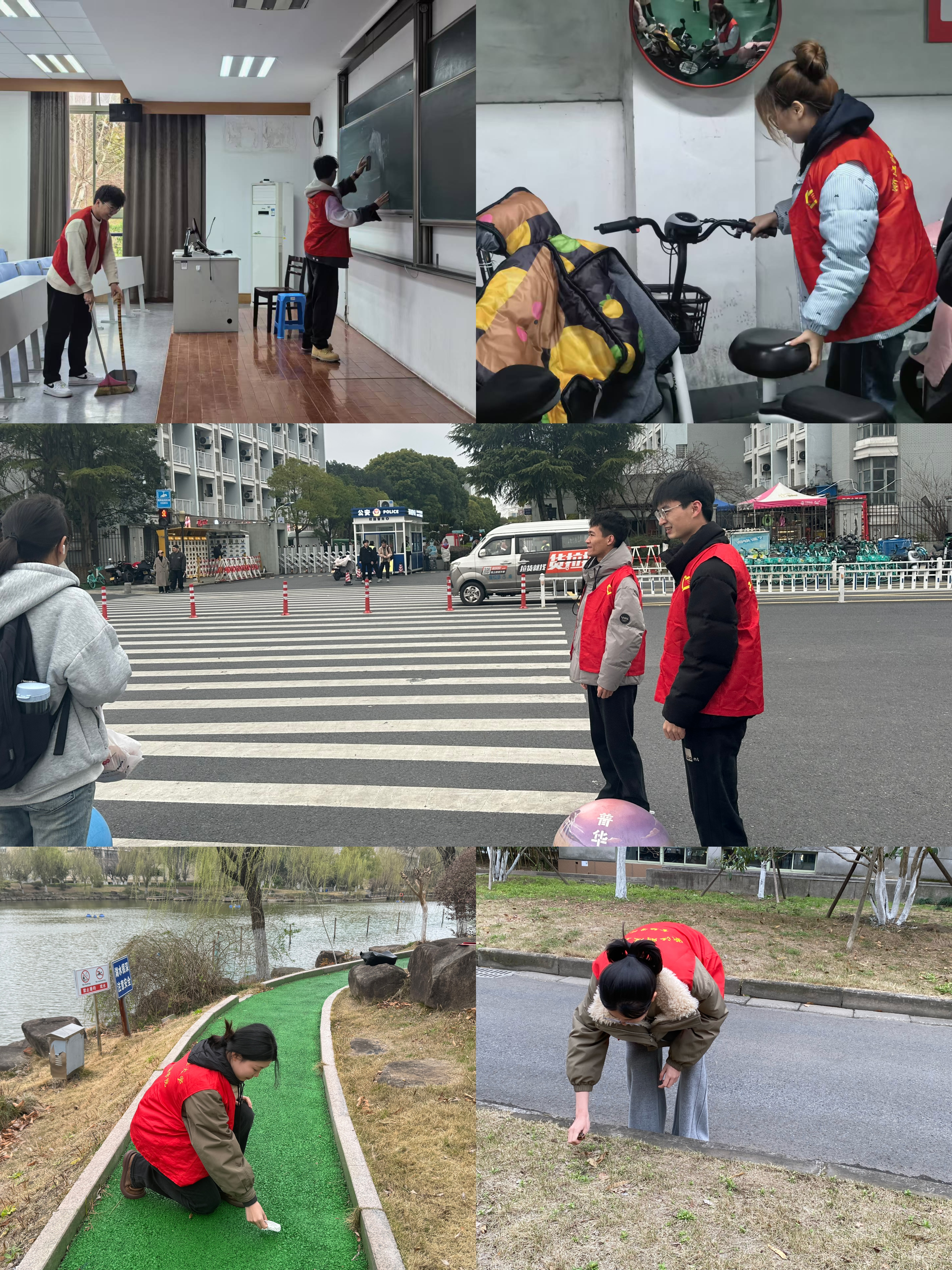 在“3·5”学雷锋纪念日即将到来之际,为充分发挥党员先锋模范带头作用,学院党委组织全体新党员在校园内开展了内容丰富、形式多样的志愿服务活动。在清理学涯湖周边道路、清理学院楼北面道路、地下车库非机动车摆放、指挥路口交通的过程中,党员们用实际行动美化了校园环境,展现出党员的精神风貌,让文明之花在校园内绽放,让志愿精神成为时代新风。