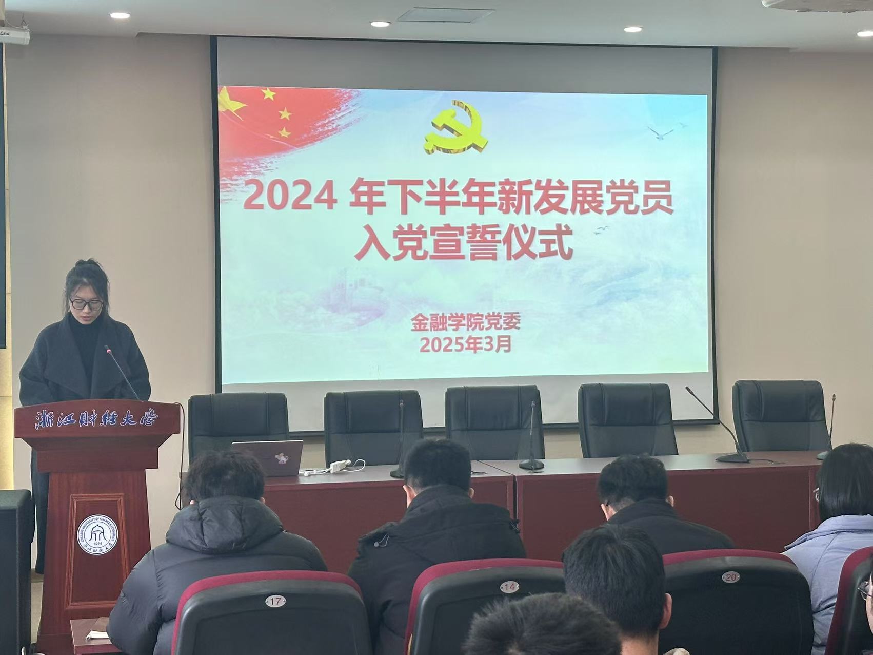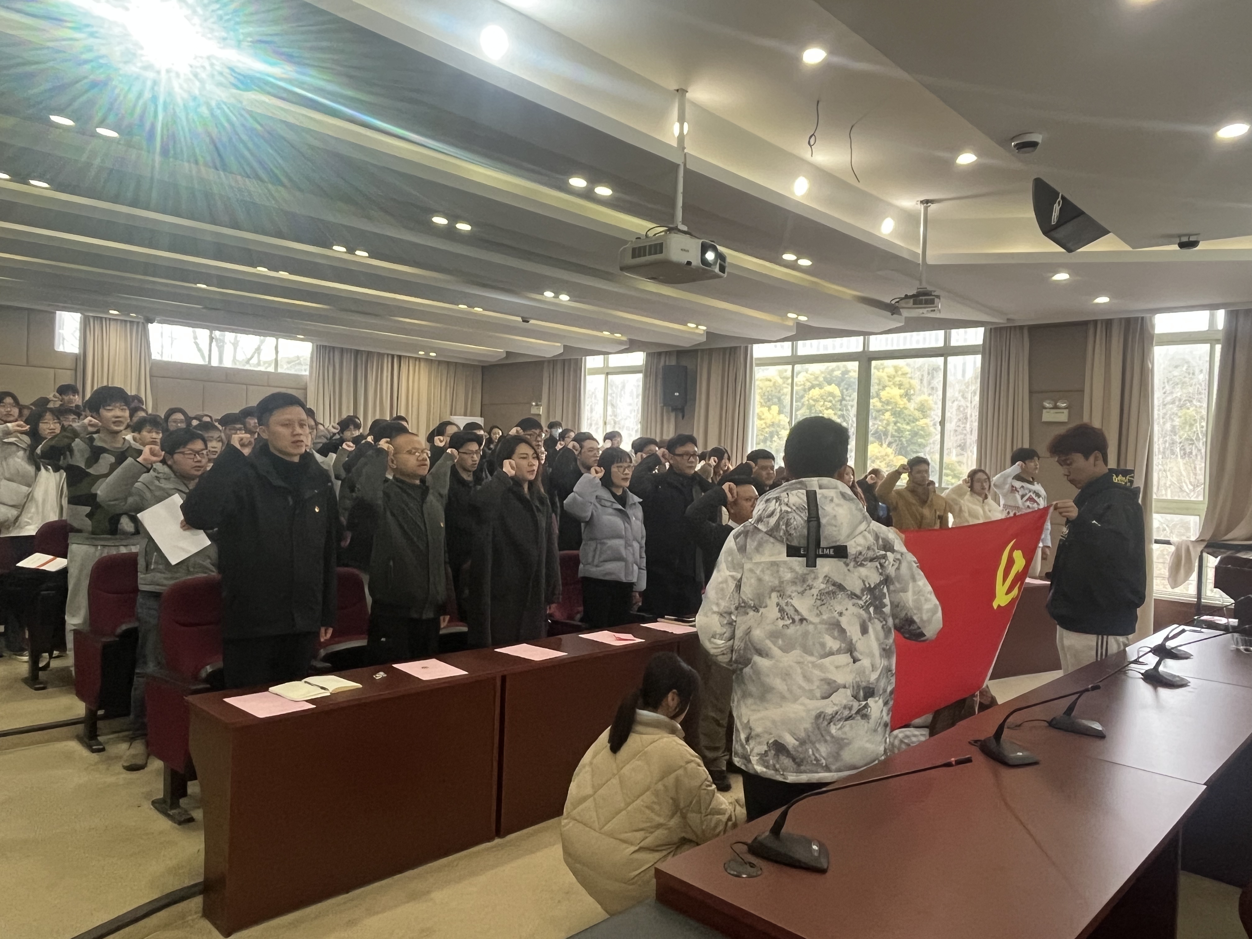 党委在学院楼202报告厅举行2024年下半年新发展党员入党宣誓仪式。学院党委书记黄文礼、党委副书记陈思佳、各党支部书记、研究生党建指导老师、各支部支委、老党员代表及2024年下半年全体新发展党员共同出席了本次仪式。仪式由专职组织员翟丽媛主持。