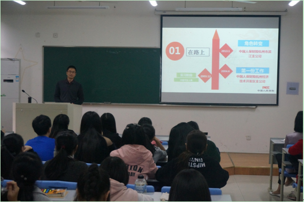 2016年11月21号下午,应猫都论坛 叶晓凌老师邀请,中国人保财险杭州滨江分公司总经理戚惠杰校友走进《保险学》课堂,与学生们分享了有关车辆保险、保险业服务创新、互联网以及大数据应用的未来趋势和前景。戚惠杰是我校2000级金融专业学生,2004年毕业后进...